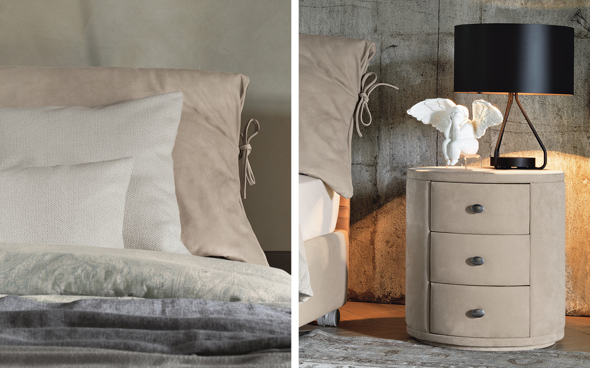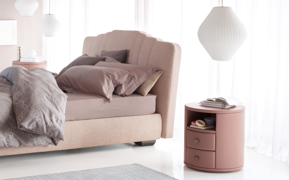 圆桌桌,配有两个或三个带回程机制的完全可提取抽屉。皮革覆盖的结构。带刷刷抛光饰面的手柄。