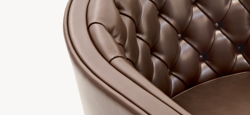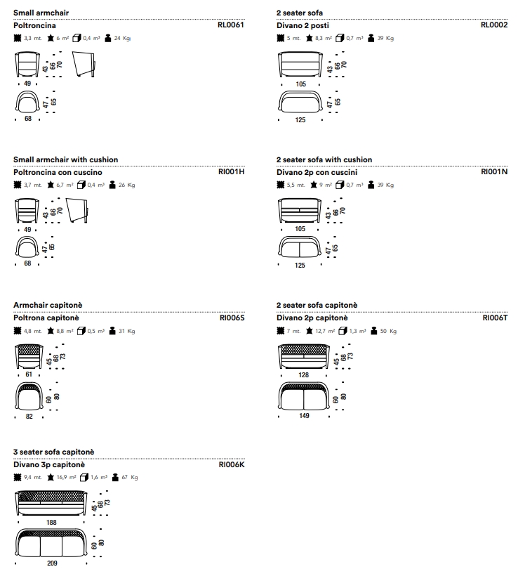 不同密度的不可变形聚氨酯泡沫和具有内部木结构的聚酯纤维。沙发和扶手椅的前脚用皮革或织物装饰,而固定在结构上的后背支撑则由山毛虫制成。磨光钢鞋垫。椅子脚在画山毛虫。除了 RI0 版本的靠垫外,Rich 系列不可拆卸。