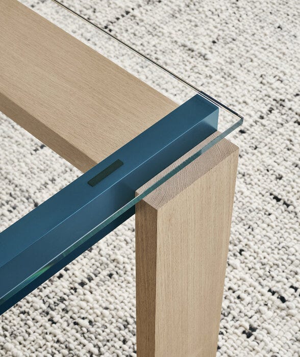 平行结构表以其纯粹的整体存在,拒绝一切形式的举止,它提供了一种建筑设计方法,其中追求极端简单性的同时,还附带了尖端的技术解决方案。该项目的起点是强大的纹理存在两个雄伟的铝棒,只需由两侧支架连接。腿是实木,而侧桥 - 连接彩色铝条的拱门隐藏 - 金属芯,提供固体和更大的视觉轻盈框架。该系列包括两种尺寸和顶部的各种材料:卡纳莱托核桃和橡木在不同的表面为极简主义风格的选择,或额外的光玻璃,其透明度增强工程过程的美丽。