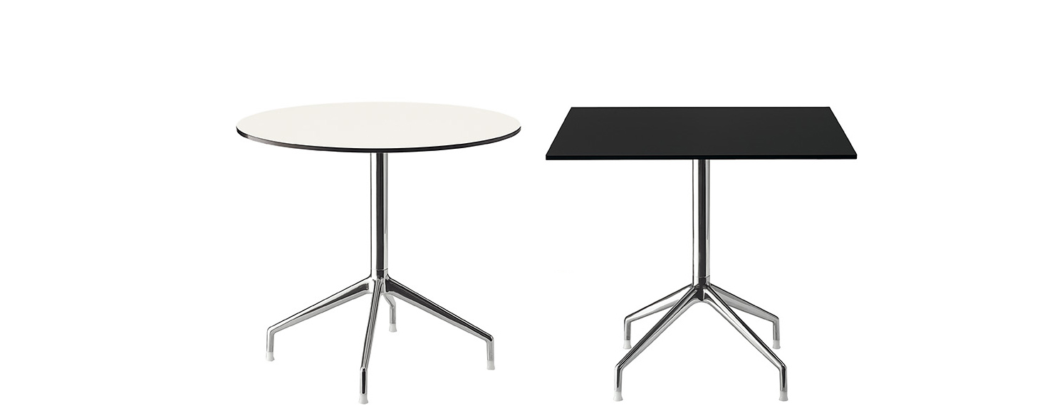 和谐和低调,新浪小桌子有一个四辐框架铝结合顶部层压板或与木材贴面在不同的表面。他们很容易适应各种用途,无论是在家里和合同家具行业。