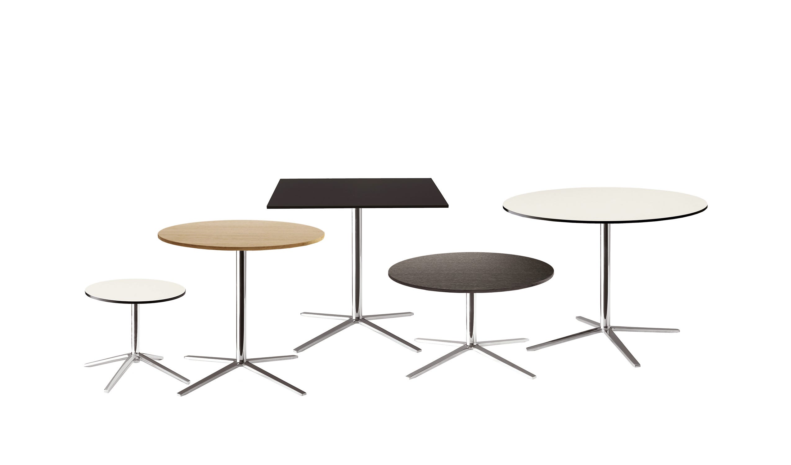 宇宙是一系列不同尺寸的圆形和方形桌子,所有圆桌和方桌都用铝共享相同的辐条框架。顶部可在层压板或橡木在各种饰面。和谐的极简主义,他们可以相互结合,轻松适应各种用途,在家里和合同行业。