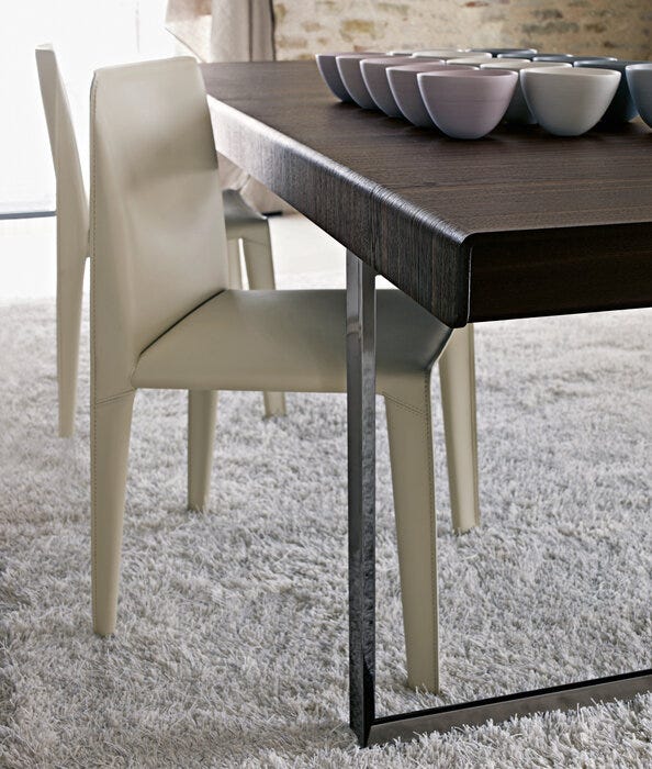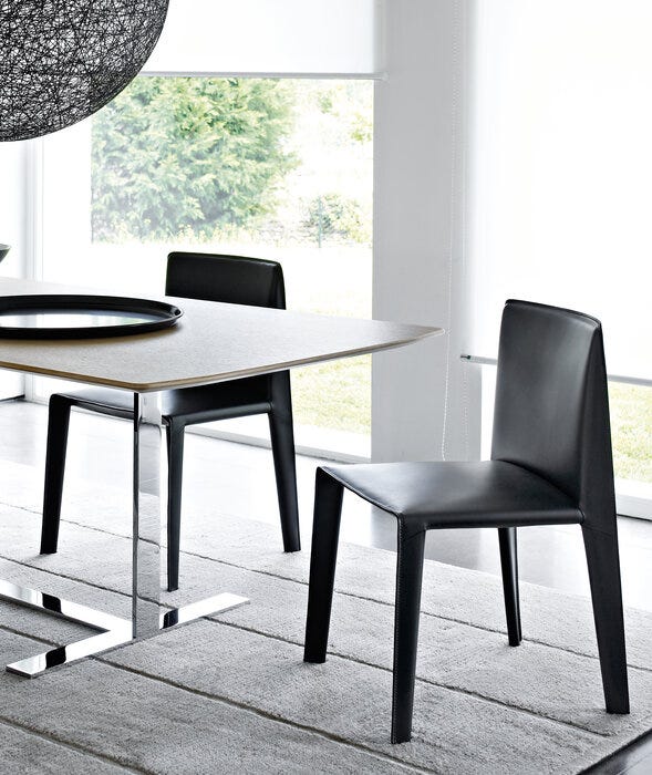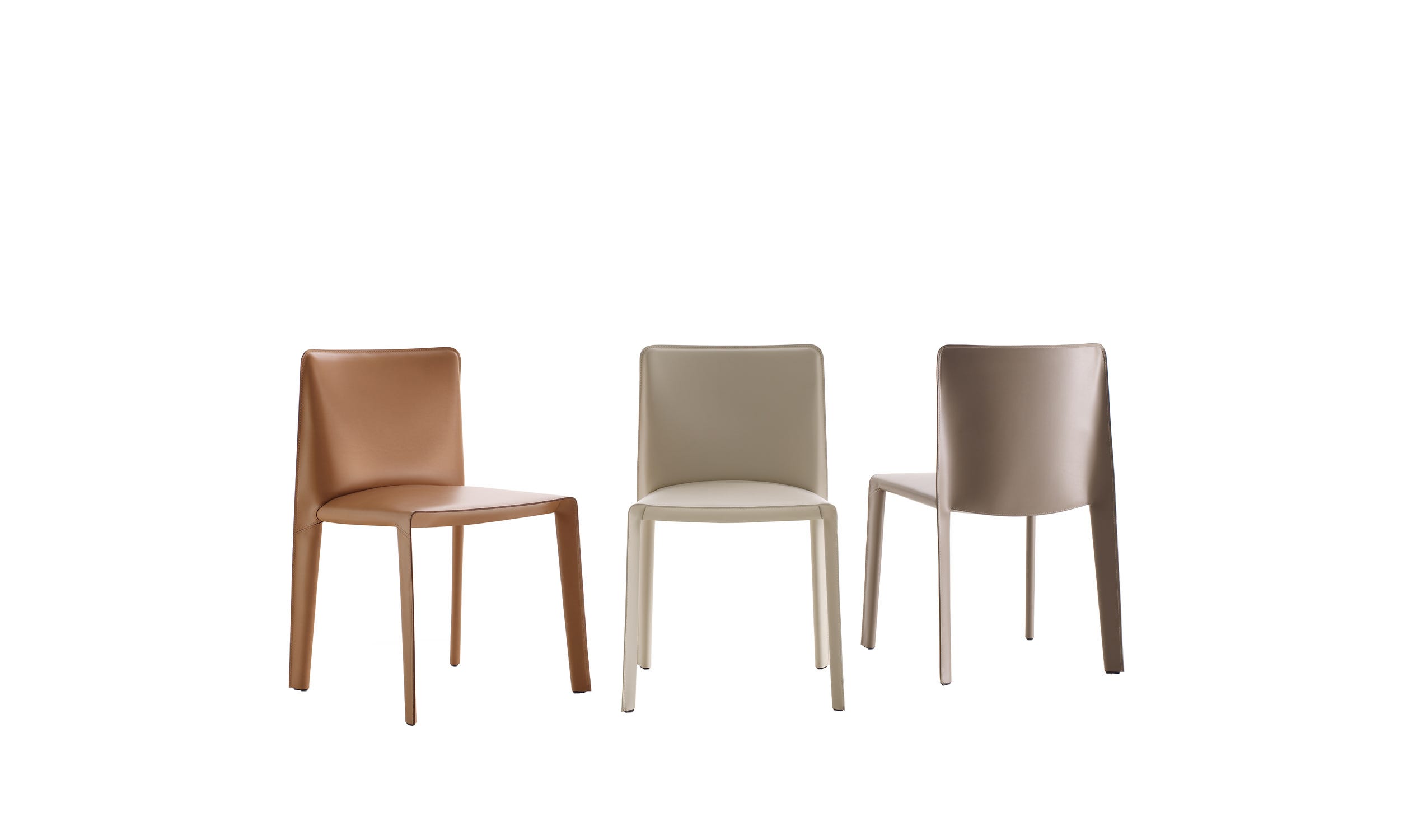 这件作品是精密研究的主题填充厚皮革,达到非常薄的裁缝解决方案的结果。座椅和靠背的线条以及凸起形状可以感知柔软度。厚皮革弯曲,圆润,转动,但从不切割:正面和背面的连续接缝添加图形符号。织物变种可以非常丰富多彩。
