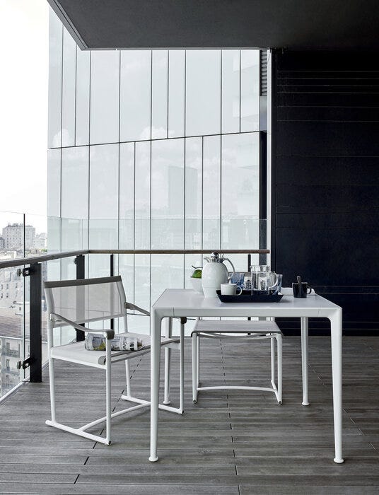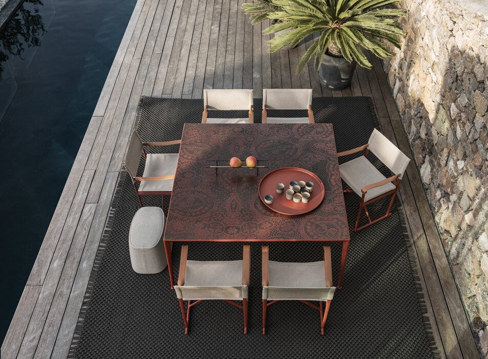 Mirto 户外座椅无论从形式角度还是从物理角度,都体现了超越时间和时尚的优雅。它们有固定版本,有或没有扶手,并在折叠版本中,重新解释经典导演的椅子。它们具有轻铝框架和座椅,并回到巴蒂林?卡纳特克斯网格,其大麻纤维赋予一个令人惊讶的自然外观相比,通常用于这个行业的塑料。边缘是熟练地切割,缝制和粘在轮廓周围,以创建一个极简主义的装饰。Mirto 户外酒店拥有一系列完整的户外家具,包括椅子、扶手椅、躺椅、餐桌和家具。