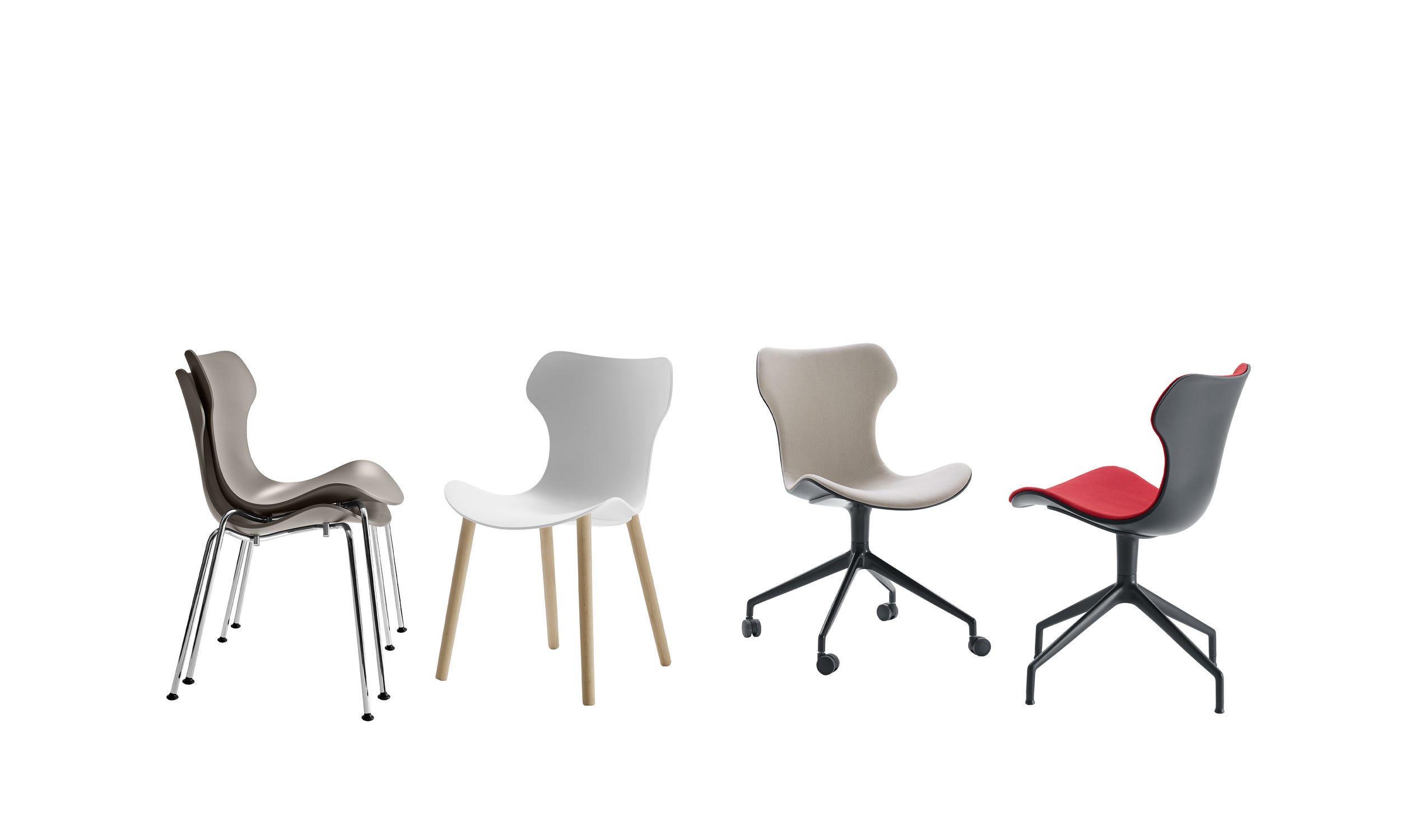 Papilio Shell 座椅是同名标志性座椅系列的一部分,它要么带有完全以聚丙烯为晶的外壳,要么带有填充并覆盖在织物或皮革中的聚丙烯外壳。底座有几个版本:四条钢或木腿,旋转四辐框架,或固定的四辐框架与车轮。帕皮利奥壳牌的背面的形状让人想起一只准备飞行的蝴蝶的五颜六色的翅膀。正是这个细节启发了名字,"帕皮里奥"是蝴蝶的拉丁语术语。