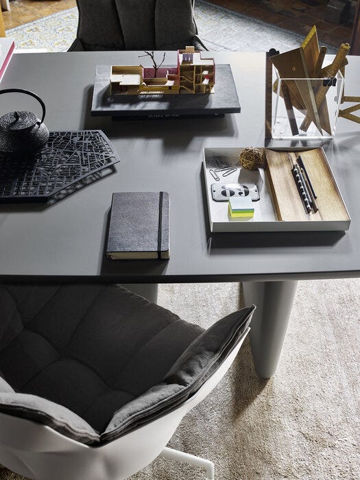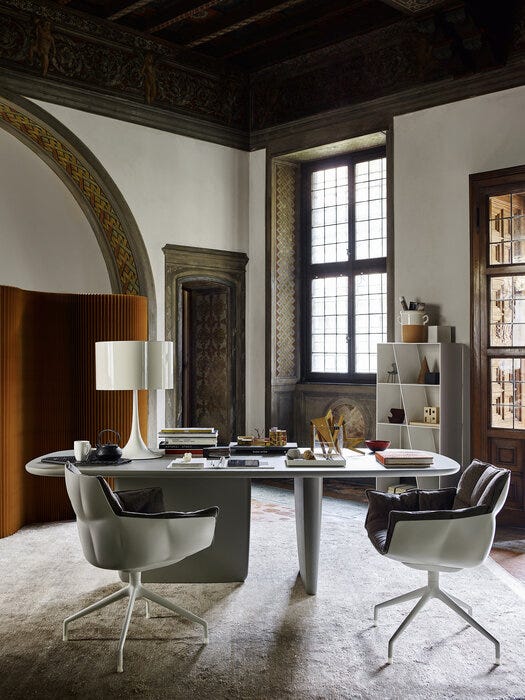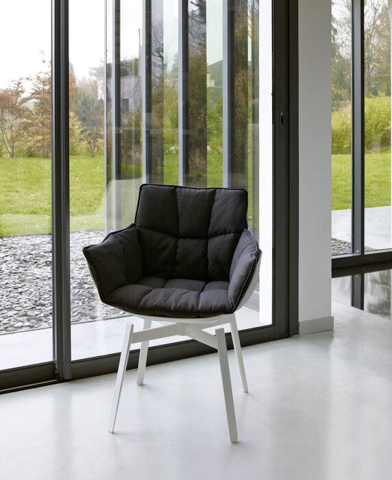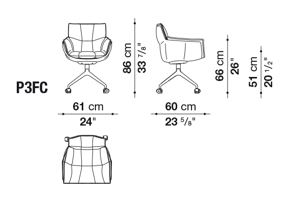 舒适,基地和座椅的现代组合,它拿起同名扶手椅的轮廓。身体,其形状的设计,引用了Capitonn®风格,传达了柔软的感觉;靠垫,在织物或皮革,固定与压螺柱,以缝制区分。