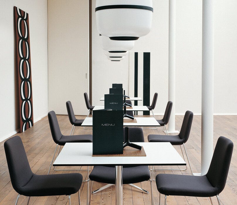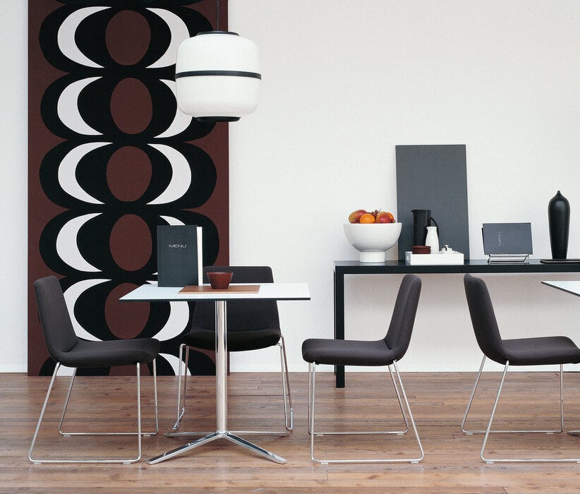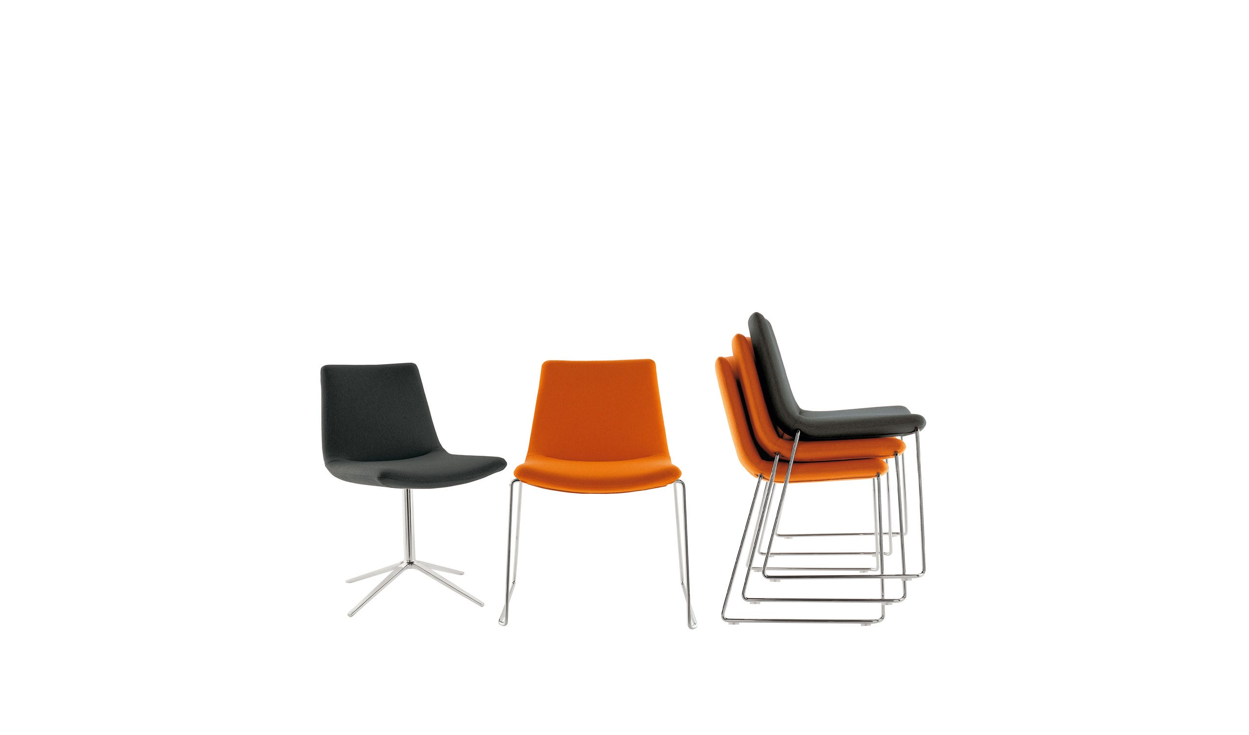 当代宇宙座椅以不同版本的框架脱颖而出:从具有经典四辐基座的拉丝铝和旋转座椅,到可堆叠的染色钢棒,特别适合合同行业。非常舒适,由于慷慨的衬垫,它可以在织物或皮革装饰。