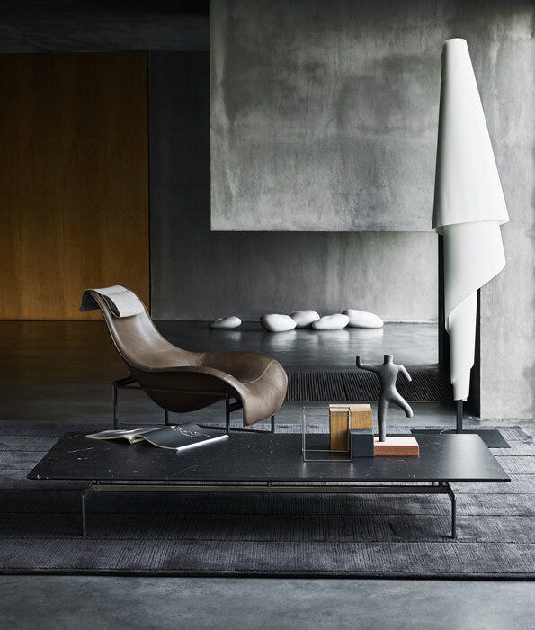 像沙发一样常绿,它激发了其压铸铝支撑。两个令人印象深刻的版本,即使在大小方面;另一个打火机有两个顶部,一个在透明的地面玻璃,另一个覆盖着厚厚的皮革。