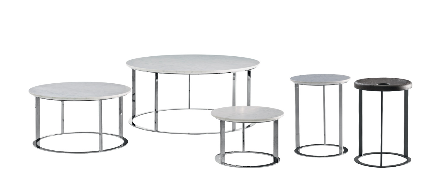 一系列具有横向特征的小桌子,让您轻松地将它们与最传统的沙发和现代沙发相结合。提供不同尺寸和高度,他们有一个大理石顶部和一个钢结构,都从各种饰面选择。
