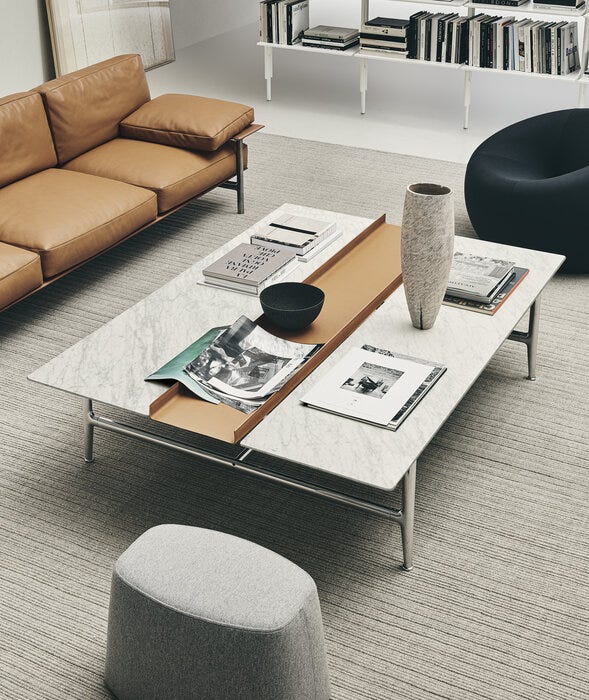 方形或矩形,皮亚努拉低矮的桌子突出的基本和复杂的功能,给生活的建议,伟大的正式优雅。木制或大理石顶部和铝结构,它也与厚皮革托盘集成到顶部。有许多是从顶部和结构中选择的饰面。