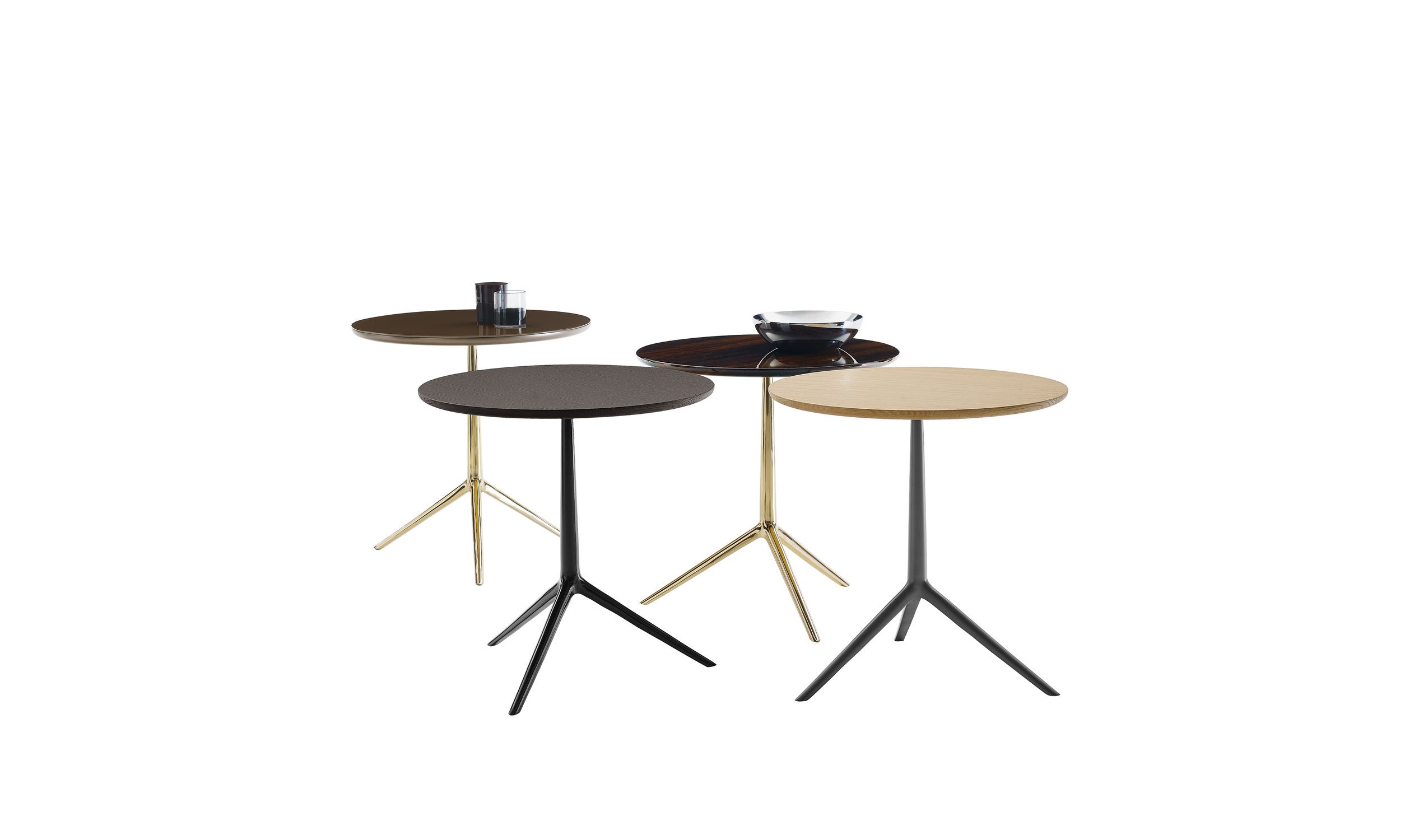 与舒适的小桌子安东尼奥·西特里奥重温古典三条腿基座表的美学,把它变成一个故意古怪的高设计项目。一个有吸引力的元素,合并到各种内饰,它有一个支持框架在压铸黄铜或彩绘金属合金。顶部有圆形和椭圆形版本,有许多变种:橡木与几个饰面,桉树,玻璃或大理石。