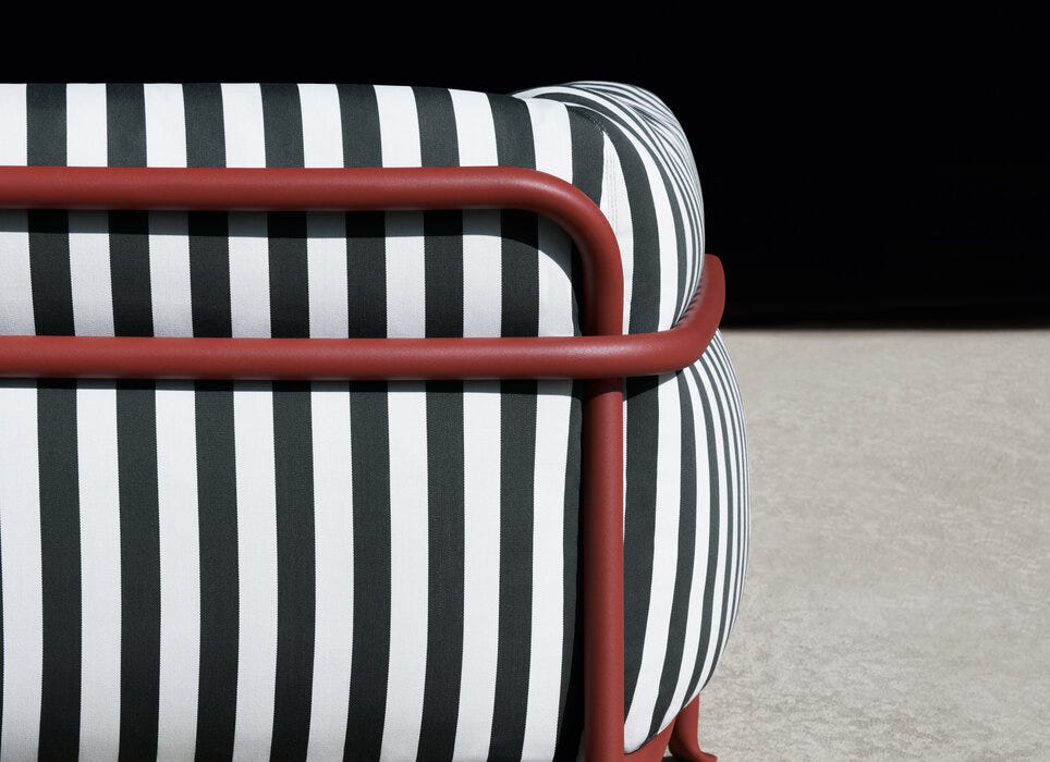 户外的 Borea 双座和三座沙发采用管状金属框架,采用流体和无缝设计,无需接头和中断,最后部分的图案出人意料,位于地面上。金属弯曲工艺采用航空部门通常使用的利用技术,并将它们运送到户外家具的世界中,为具有明确风格的收藏品赋予生命。舒适性由慷慨、温馨的靠垫确保,这些垫子不仅柔软、放松,而且开发为可持续:衬垫由从回收的PET塑料瓶中获得的100%聚酯纤维制成,将聚氨酯芯包裹在多样化密度中。需要 510 1500 毫升的瓶子来制作博雷亚三座沙发的室内装潢,为双座沙发制作 390 瓶。