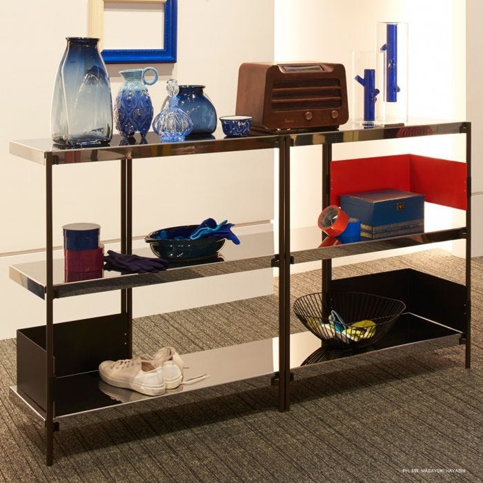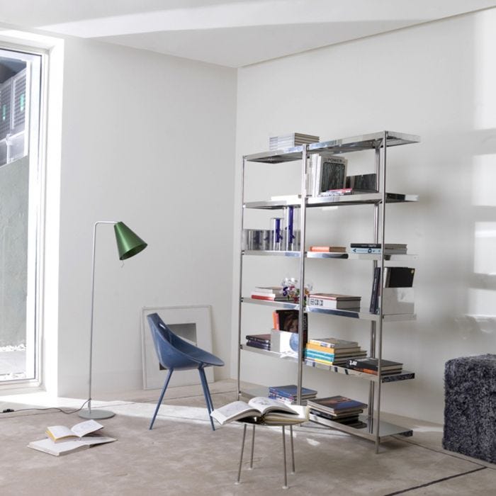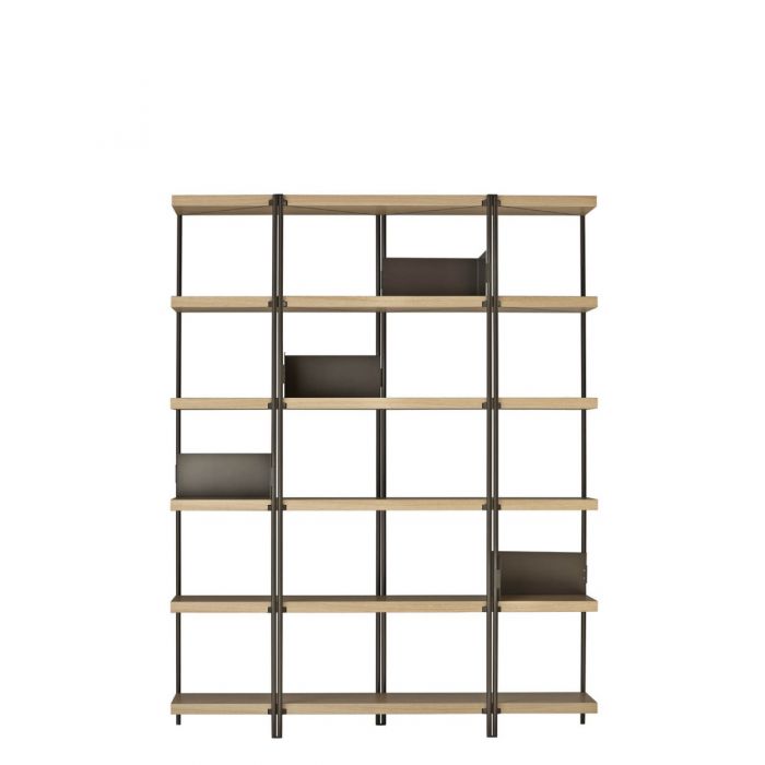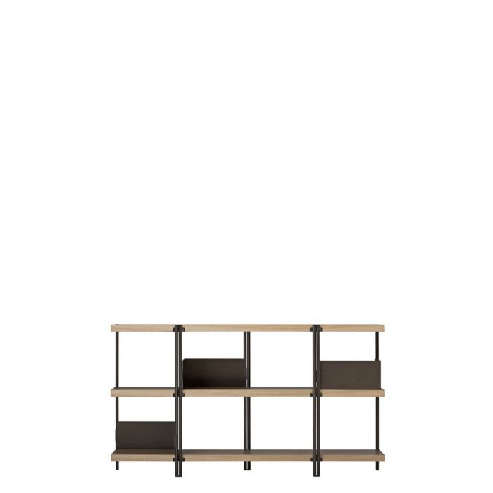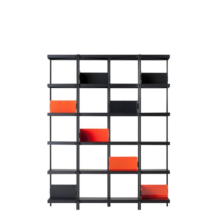 货架之字形结构,简洁清新;金属部件的调色板——黑色、白色、青铜色和抛光钢——由两种类型的木架完成,橡木和美国胡桃木。夹子书挡有与其他金属部件相同的颜色,或与书架相同的木饰面。进一步的荧光橙色阴影丰富了书签的提供。Zigzag 有两种不同的高度可供选择,无需借助工具即可组装。