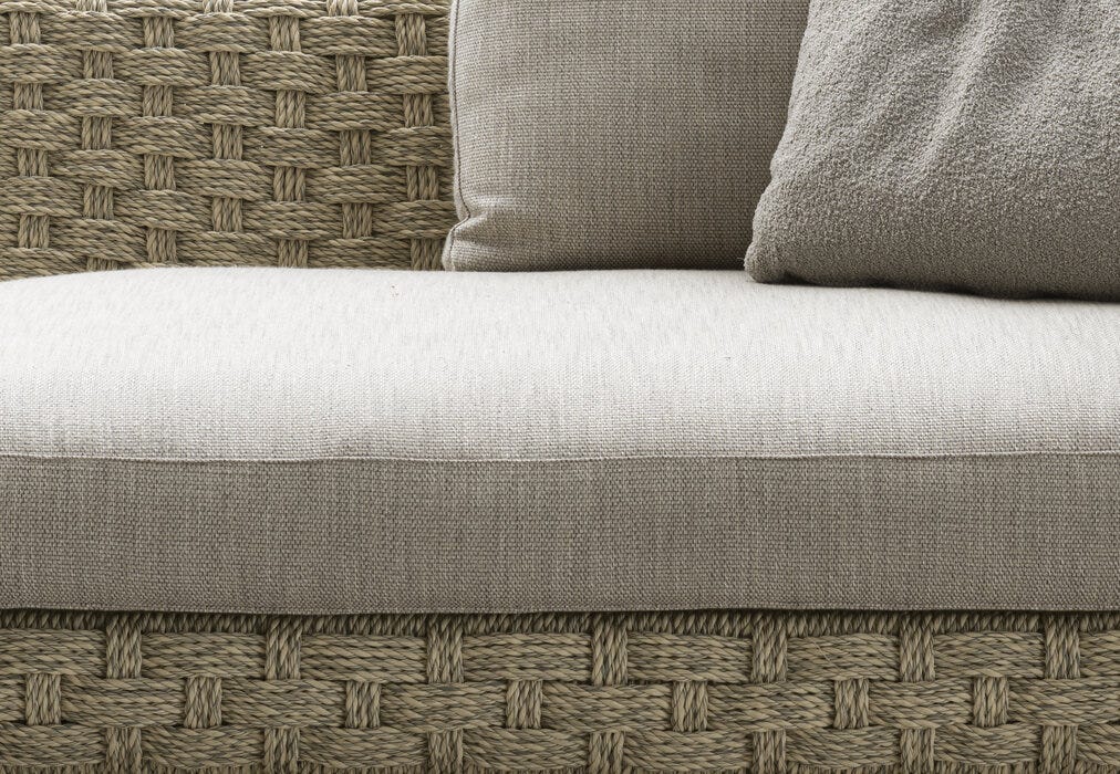 Ray 户外自然是一个户外沙发和椅子的家庭,灵感来自 Ray 室内系列,并具有让人联想到马尼拉大麻的交错绳索图案。与自然完美和谐的解决方案,与纺织品一起创建,使其非常适合户外使用,它既有脚在铝挤压和版本与柚木底框。该系列包括两个深度的沙发、模块化元素和扶手椅。