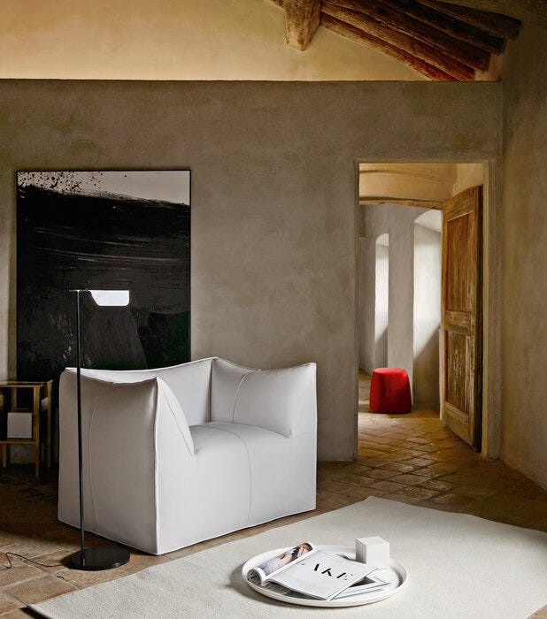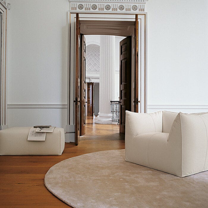 Le Bambole 是永恒的当代的象征,也是意大利卓越表现力的一个最有效表现,将研究和创造性天赋相结合,最初设计于 20 世纪 70 年代,1979 年赢得了 Compasso d'Oro,并且为座椅主题提供了非常个人化的答案,在这种情况下,该主题来自包含后座的单个方块, 座椅和扶手,仿佛"雕刻"成一个单一的材料。舒适的形状没有僵硬的支撑,仿佛完全由织物制成,其中传统元素融合成设计师建立的,谁想要复制"一个活的身体,柔软和安全,愉快的触摸和拥抱"。使他们与众不同的是,明显缺乏承重结构,其形状的极端自然性,以及他们的外观所传达的舒适性、柔软性和弹性的结合。最初的设计在2007年进行了修订,使该系列的碎片看起来略显纤细:Le Bambole'07,在版本为扶手椅(班博拉),双座沙发(比班博拉)和三座沙发(特里班博拉),除了匹配的脚凳,都是用可拆卸的封面。