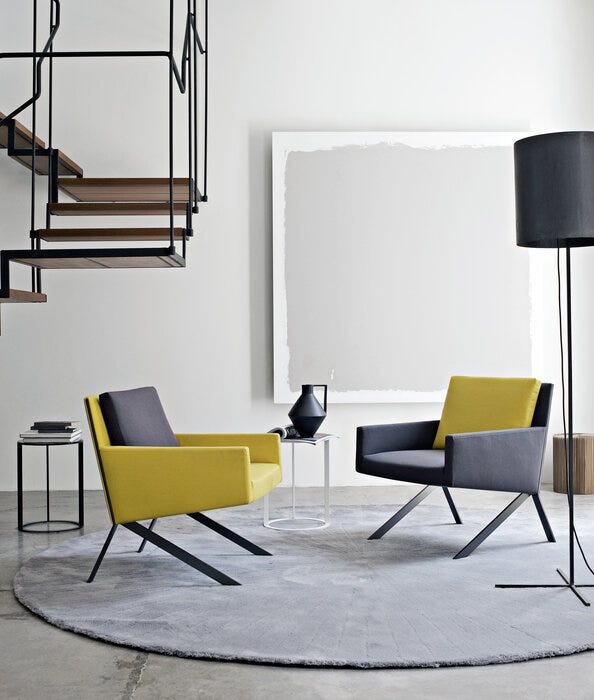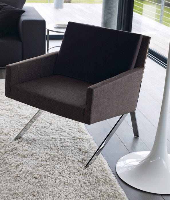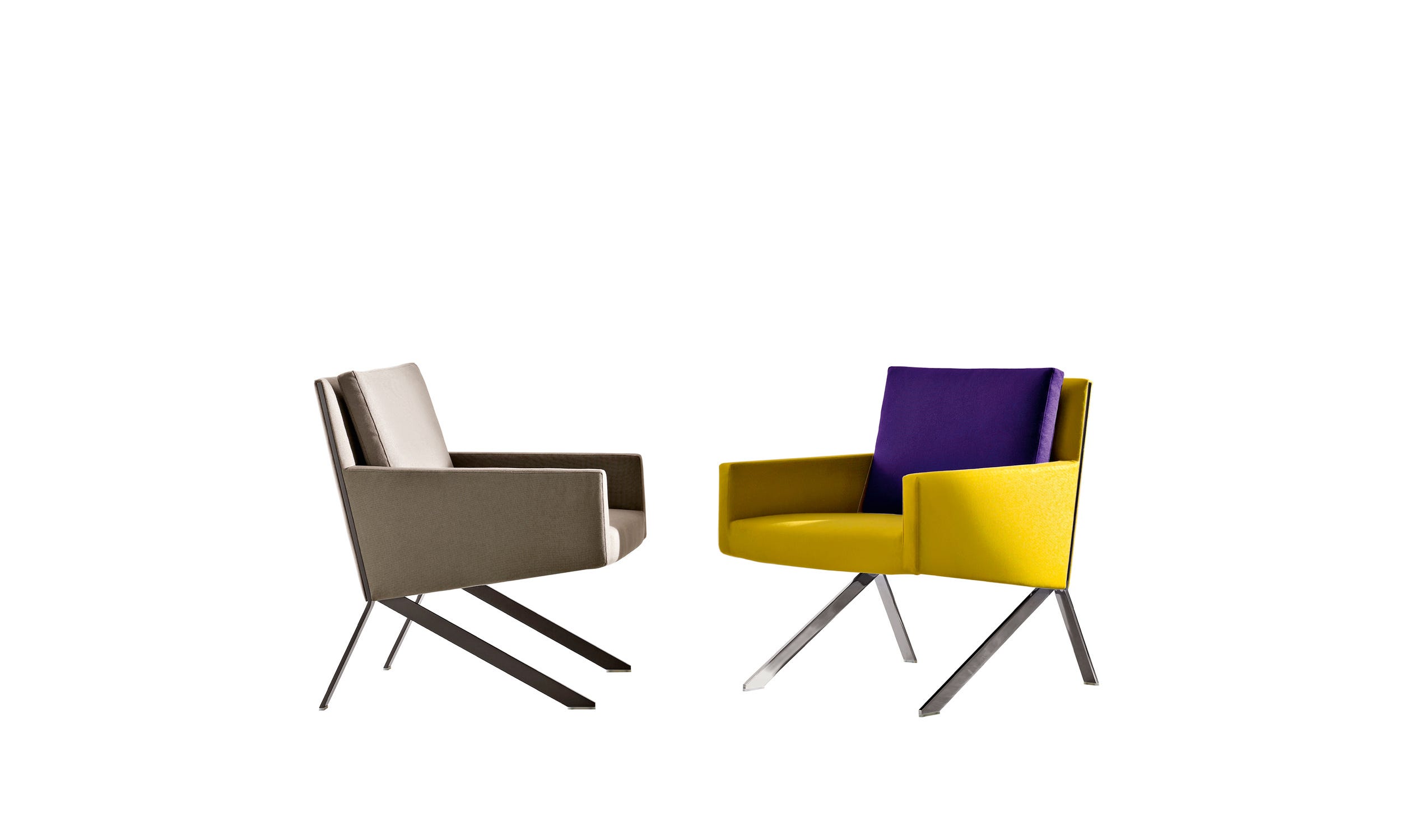 西奥是一个扶手椅,具有很强的身份,座椅似乎悬挂和浮动在支撑上,对比其静态性质。它提供面料或皮革内饰:单色更经典的外观,双色调为更年轻和更具讽刺意味的建议。钢基以各种饰面提供。