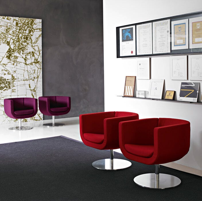 郁金香六十六和郁金香六十扶手椅专为合同部门设计,其特点是精致的当代性。郁金香六十六号舒适且旋转,配有铝制圆形底框。郁金香六十有较小的尺寸,有两个版本:与铝旋转四星级基地或固定基地在钢棒。