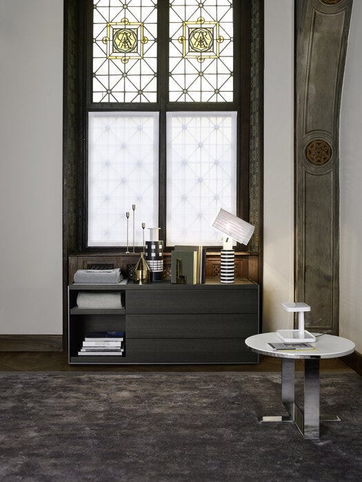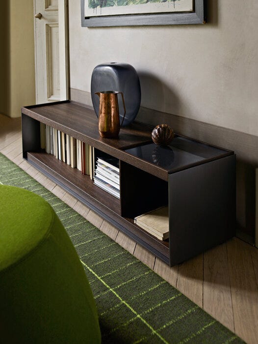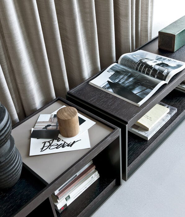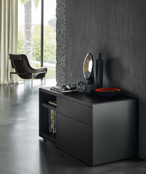 几何和线性,表面存储单元与抽屉突出其减少的形式,基本材料和颜色选择清醒的特点,从来没有问题从简化,而是从微妙的追求平衡。凭借其巨大的定制可能性和材料组合,它们是真正标志性的现代家具。