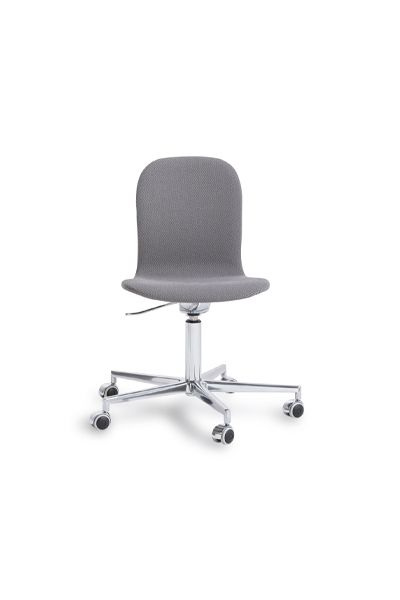 雪橇底座,缎面不锈钢或哑光涂在白色,无烟煤或泥浆;有五个抛光镀铬辐,用脚或脚轮。