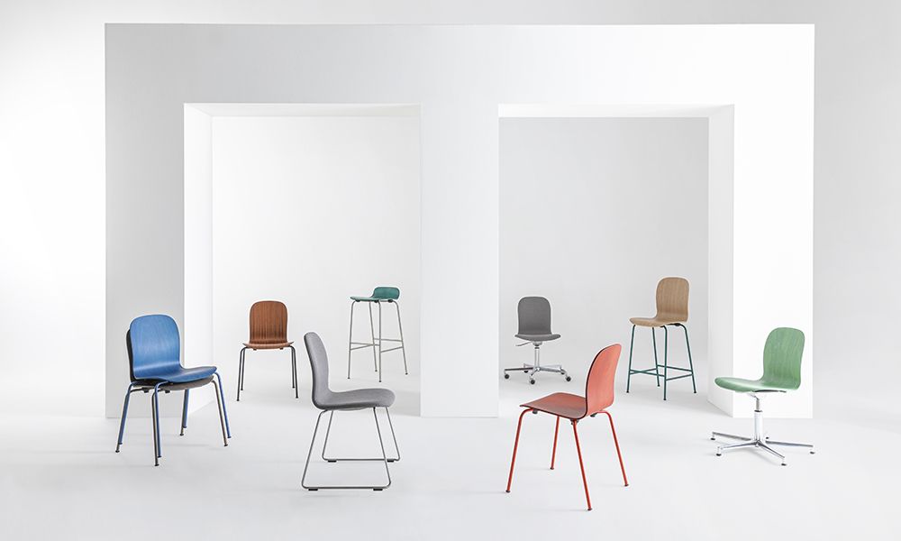 Tate Soft 提供各种可堆叠的椅子和凳子,两种不同高度的灰胶合板,配有固定内饰(织物或皮革),外壳具有高或低背饰,可配备不同的底座:四条腿配有缎面不锈钢饰面或哑光缎漆,颜色为白色、泥浆、无烟煤、南瓜、砖、草绿、汽油和普鲁士蓝:
