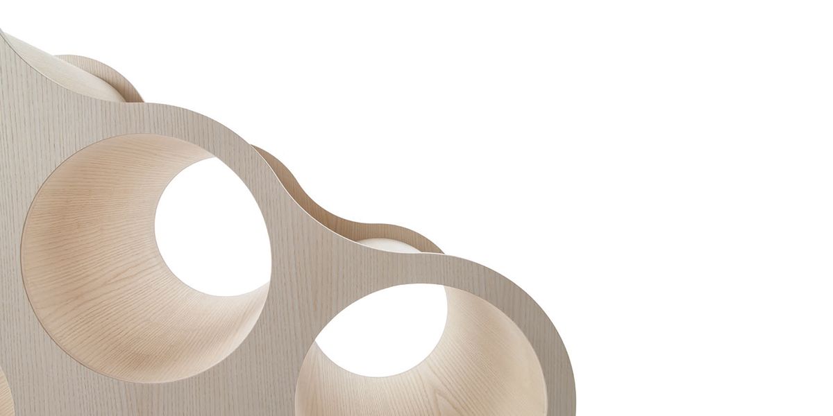 截至2018年,卡佩利尼目录中最成功的产品之一,罗南和埃尔万·布劳莱克的木云书架,现在以新版本提供,进一步升高云的形式和几何形状:最初由旋转模制的白色聚乙烯制成,书架现在可在木材中使用,贴有漂白灰或玫瑰木。木云基于带空心隔间的双面结构,由可与缩回接头互连的模块组成。