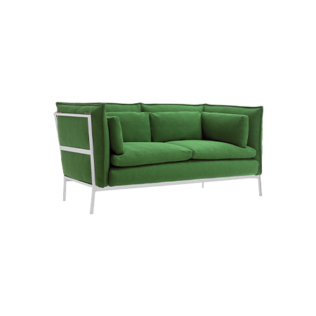 篮子沙发由白色、红色、泥浆或无烟煤的哑光涂漆金属结构支撑。可拆卸覆盖物可在收藏品的织物和皮革中提供;垫盖也可以混合不同的面料和皮革。