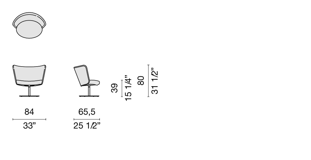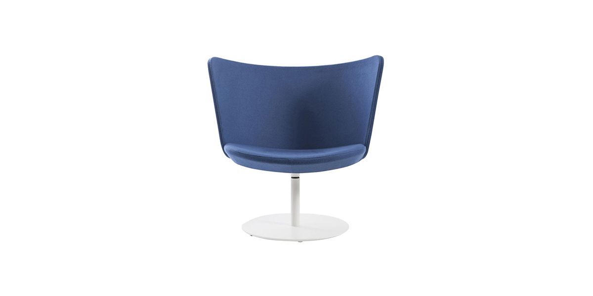 非常舒适,这把椅子有一个柔软的,半圆形的环绕背靠背放置在一个弯曲和旋转的底座之上:用白色、泥浆或无烟煤涂上哑光。