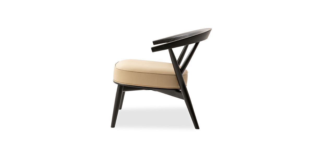纽德放松灯由实心灰木制成,有一个带皮革或织物固定盖的填充座椅。后部由一块蒸汽弯曲和成型木材制成,具有独特的开放空间,人体工程学设计可确保最大的舒适性。