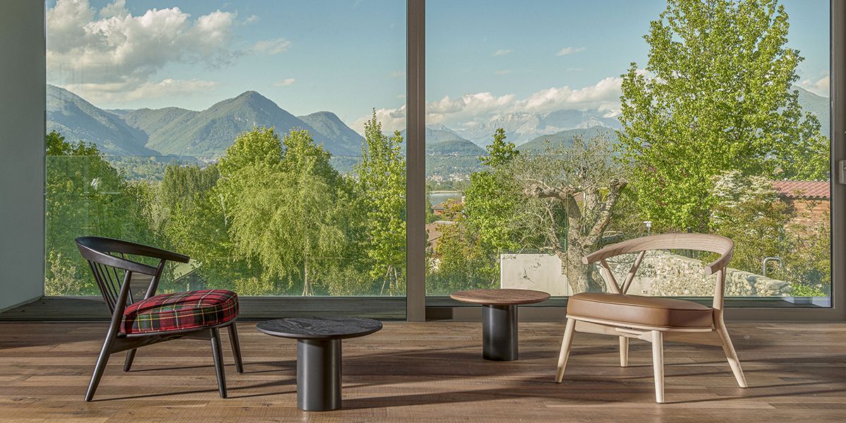 纽德放松轻椅,由布罗利亚托特拉弗索,是纽德椅子的优雅解释,但这个版本是较轻的,由于消除了八杆的特点,原来的背靠背。