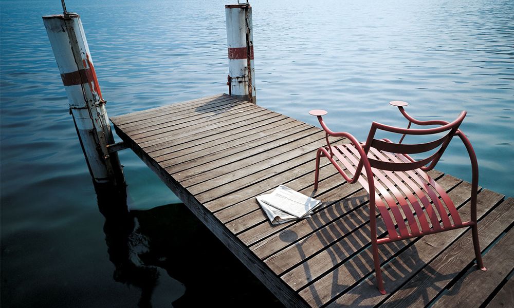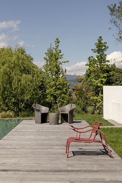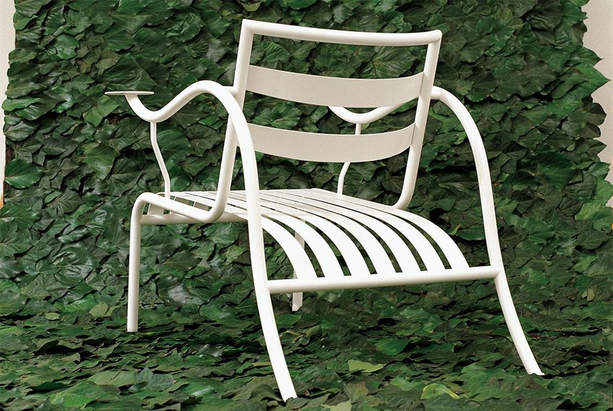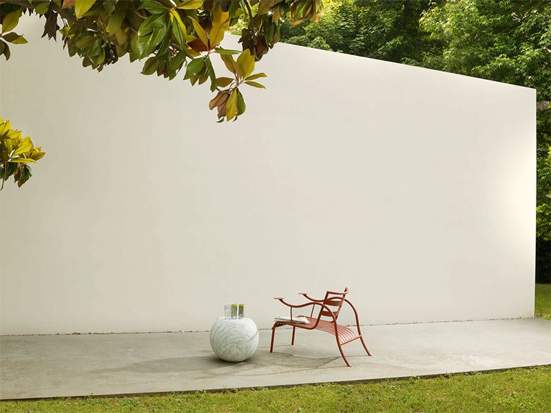 赤陶版还特别版,以文字装饰,强调金属结构曲率的半径。这把椅子适合户外使用。