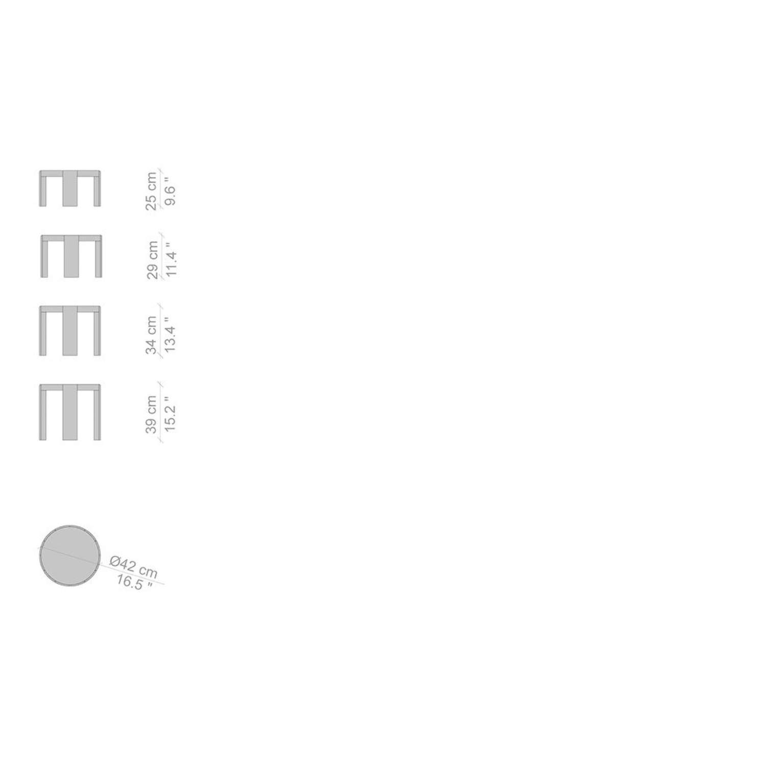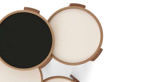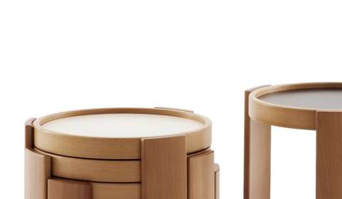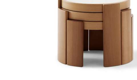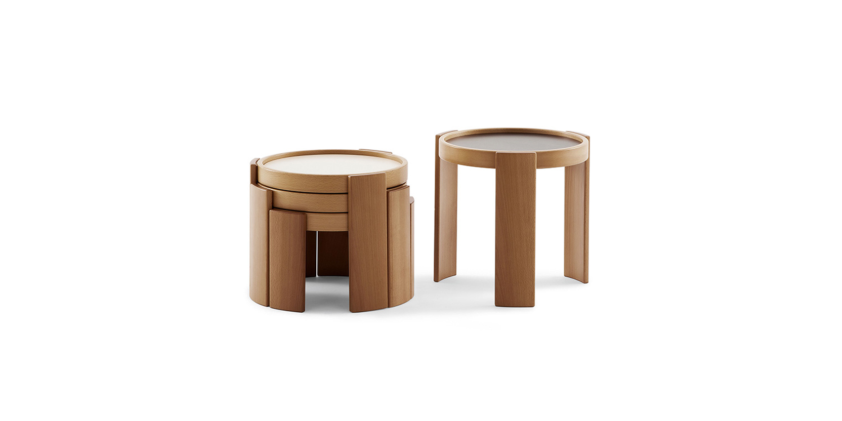 该系列成为 60 年代设计的象征,这个时代强烈倾向于乐观和实验,以寻求绝对的功能性。由 Gianfranco Frattini 构思的提案包括四张直径从 42 厘米到 61 厘米的矮桌,其特点是高度逐渐降低,可以以独特而紧凑的形状堆叠在一起,其雕塑效果让人想起鼓的形状。胡桃木染色的山毛榉木或黑漆山毛榉木结构配有天然塑料层压板架,采用单色和可逆设计。当架子被抬起时,它会露出底面的不同颜色,白漆或黑漆。今天和那时一样,该模型因其重叠所允许的巨大多功能性而受到特别赞赏。