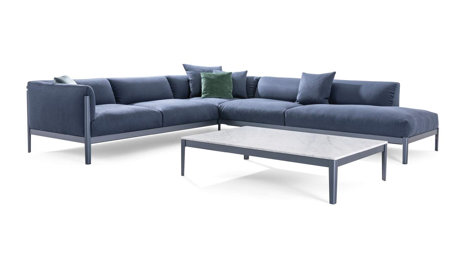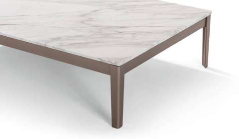 作为 Bouroullec 兄弟创建的 Cotone 系列的一部分,这款设计咖啡桌配有一个与沙发相同饰面的薄底座和一个由多种大理石制成的方形台面,带有哑光饰面。