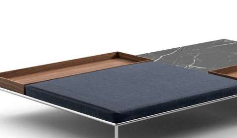 完善 Mex-Hi 系统的设计坐垫凳/咖啡桌是一种多功能元素,由于其模块化,适用于现代家具的多个空间和配置。