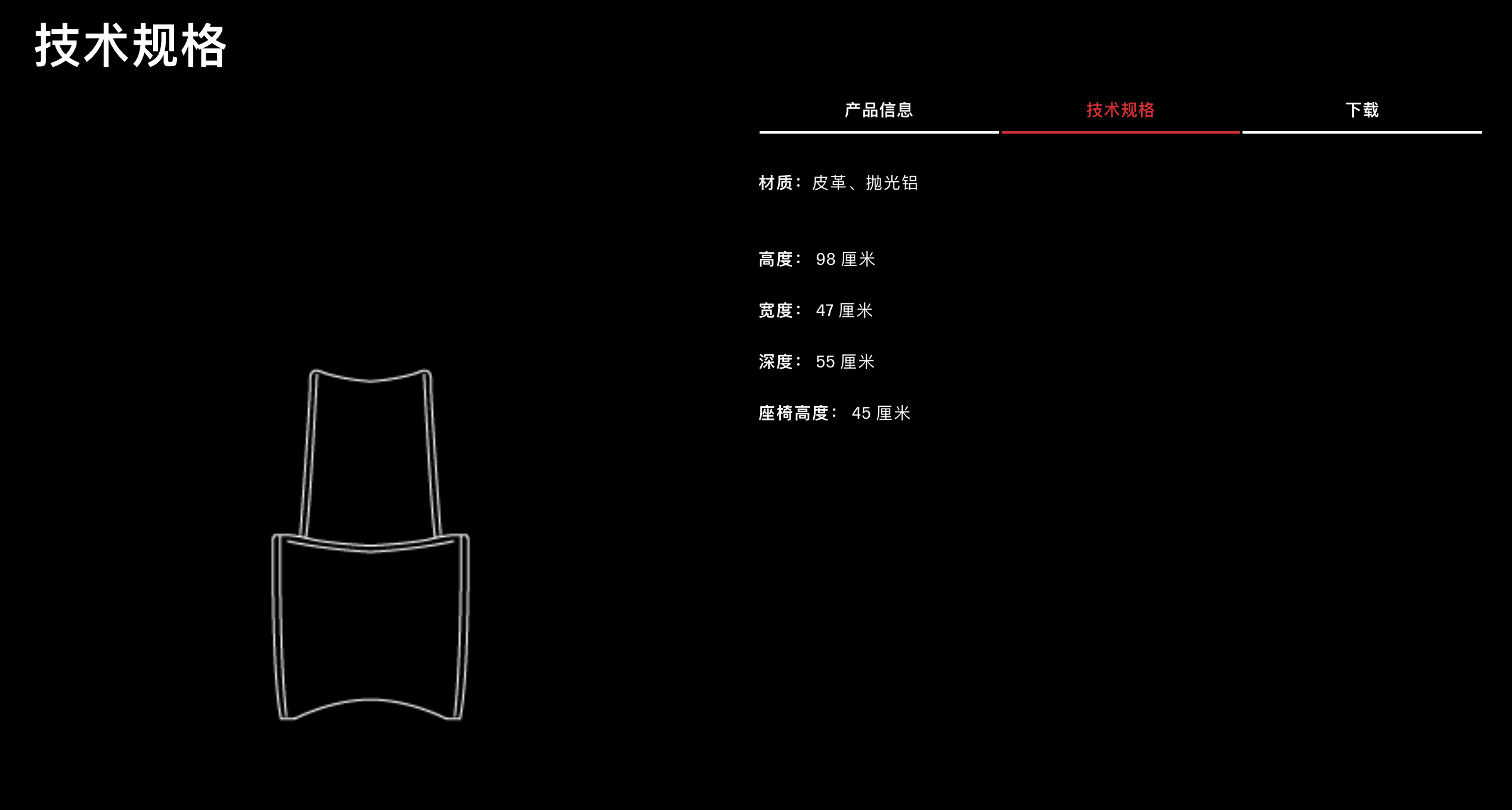 到达地面的皮革“礼服”与抛光金属的单后腿“鲨鱼鳍”形成强烈对比。毫无疑问,Archer 是一把场景化的主角椅子。