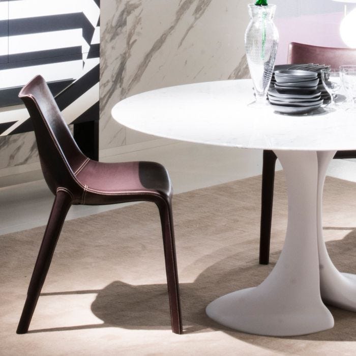 Lou Eat 和 Lou Speak 与 Lou Read 共同组成了 Lou 家族,这是一系列具有塑料和雕塑形状的椅子。Lou Eat 是该系列中最简单、用途最广的;真皮扶手椅,它被设计为餐厅的座位,但它也是空间的完美主角。“Lou Eat 不是椅子;它是一个可以吃掉你的动物雕塑”Philippe Starck