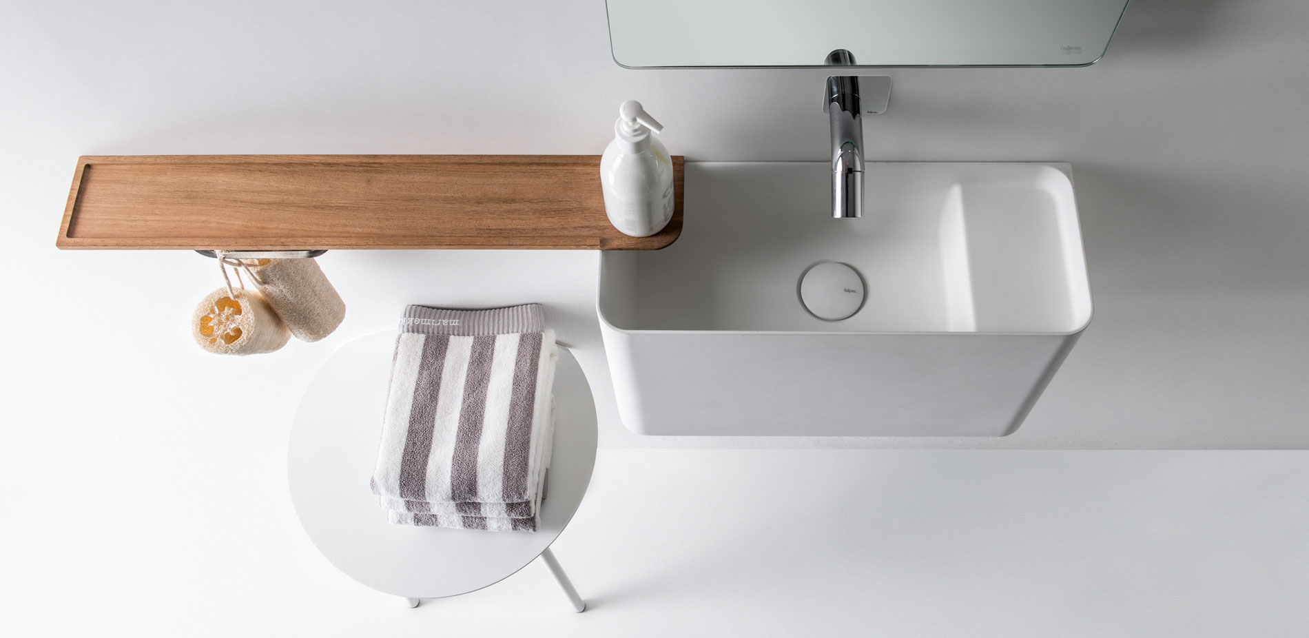 不透明 Ceramilux 壁挂式洗脸盆即使是最小的环境也能营造出愉悦和动感。它们还提供触感柔软的饰面,由可回收、抗黄变、低过敏性和无毒材料制成。