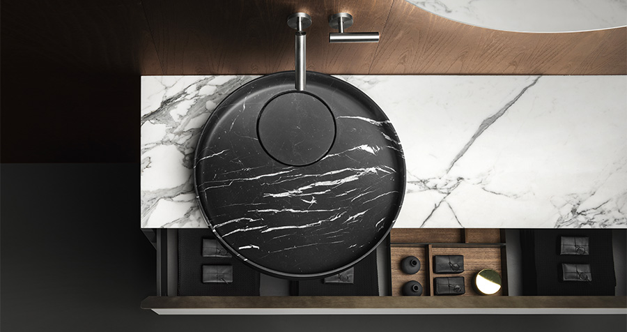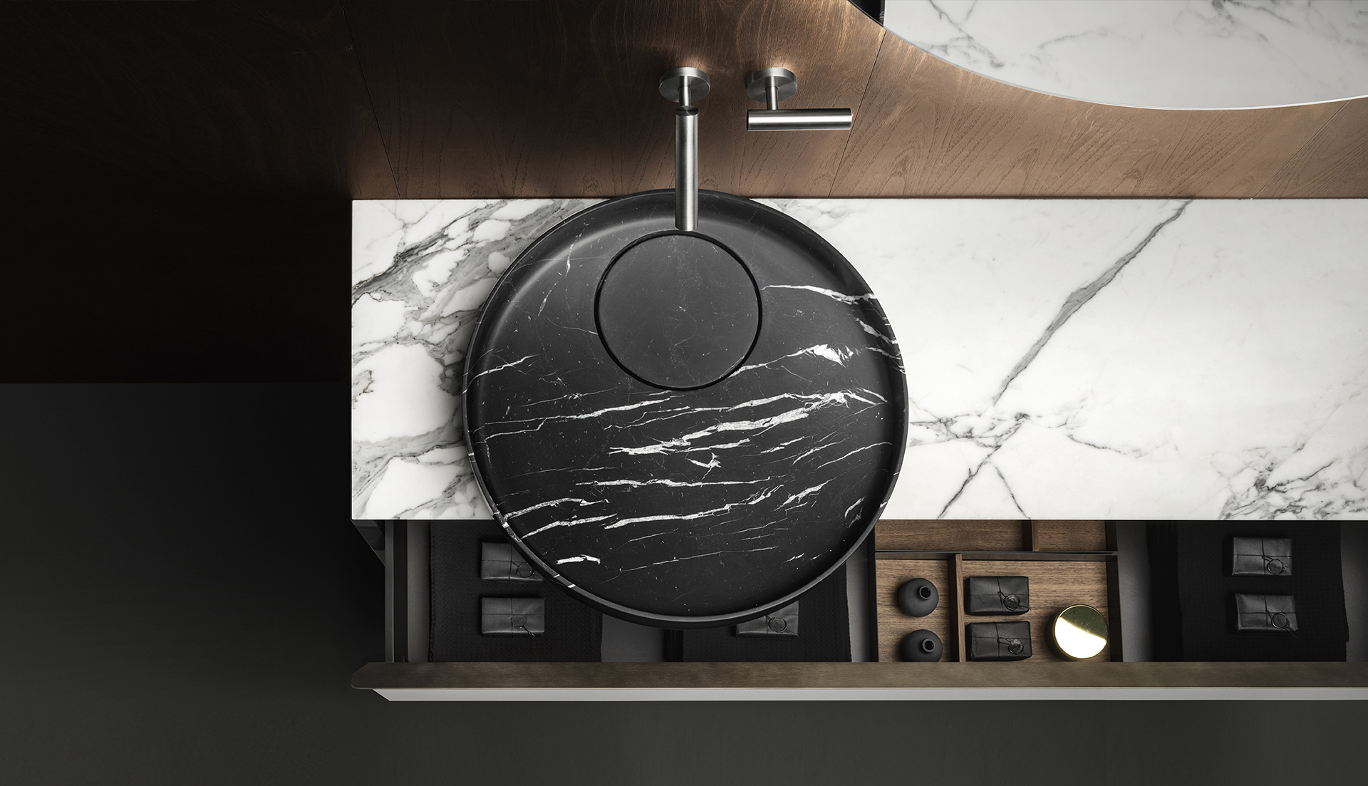 一个理性的设计,它增强了圆形的几何形状,将其转化为图腾元素,并在卡拉拉大理石、木材、金属和 Cristalplant® 的不同材料之间创造了一种简单而精致的对话。纹理和触觉建议成为精致原创性的代表,代表了一系列伟大的人物。