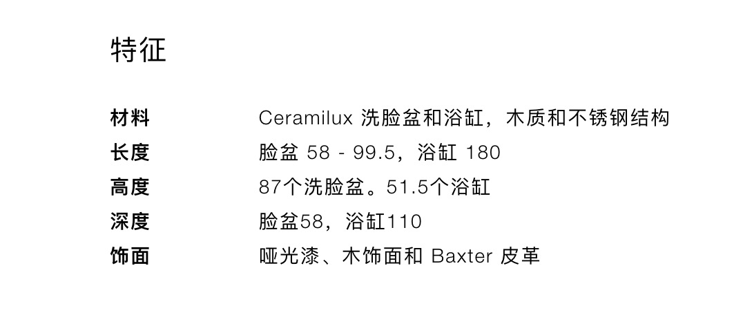 GEORGE 是一个以少数独特元素为特征的项目,其中每种材料都成为该系列价值和设计的一部分。面盆采用光面或不透明 Ceramilux 制成,或由实心雕刻而成的大理石制成,由钢、钛和铜制成的型材以及手工缝制的 Baxter 皮革或优质木材制成的锥体融合在一起,创造出代表高工艺真实作品的水槽和浴缸。为了进一步装饰独特而精致的浴室,该系列还配有储物镜 - 具有匹配的框架和轮廓,以及超透明的玻璃搁板 - 以及内置或壁挂式柱子。