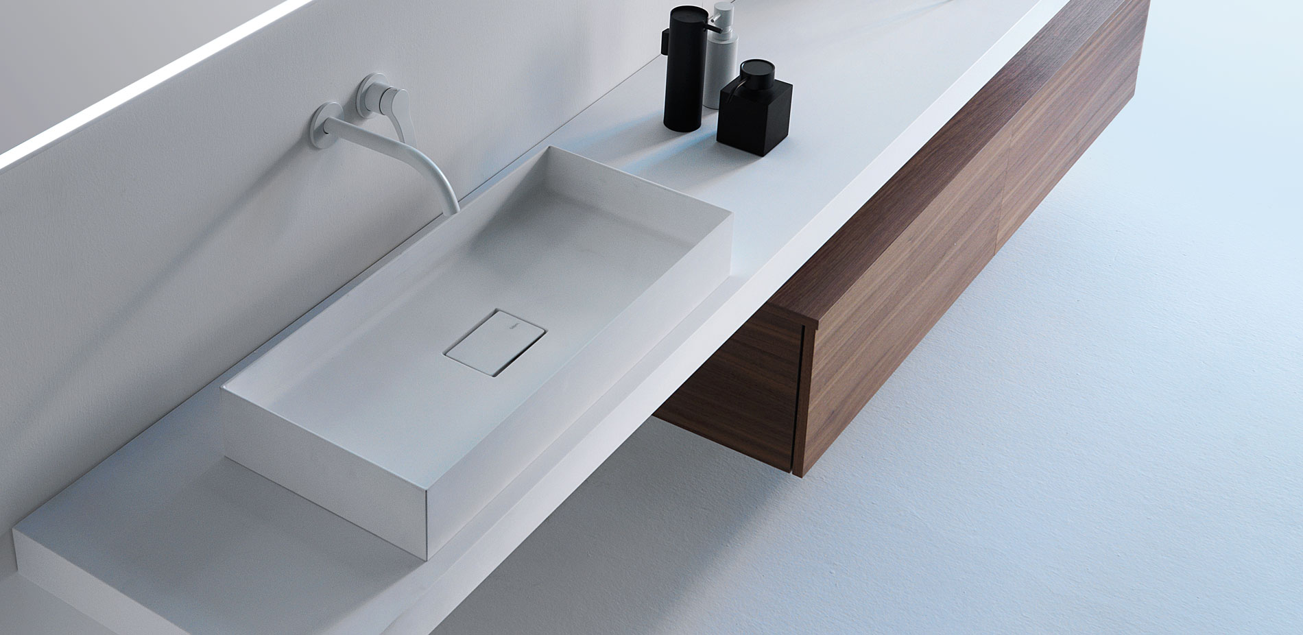 亚光白色 Ceramilux SSL 台面式洗脸盆厚度仅为 4 毫米。它采用可保证卓越品质和经认证的耐用性的材料制成,可回收、抗黄变、低过敏性和无毒。