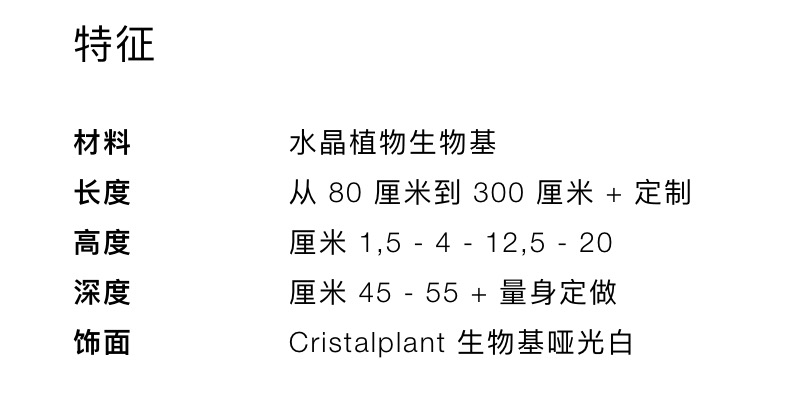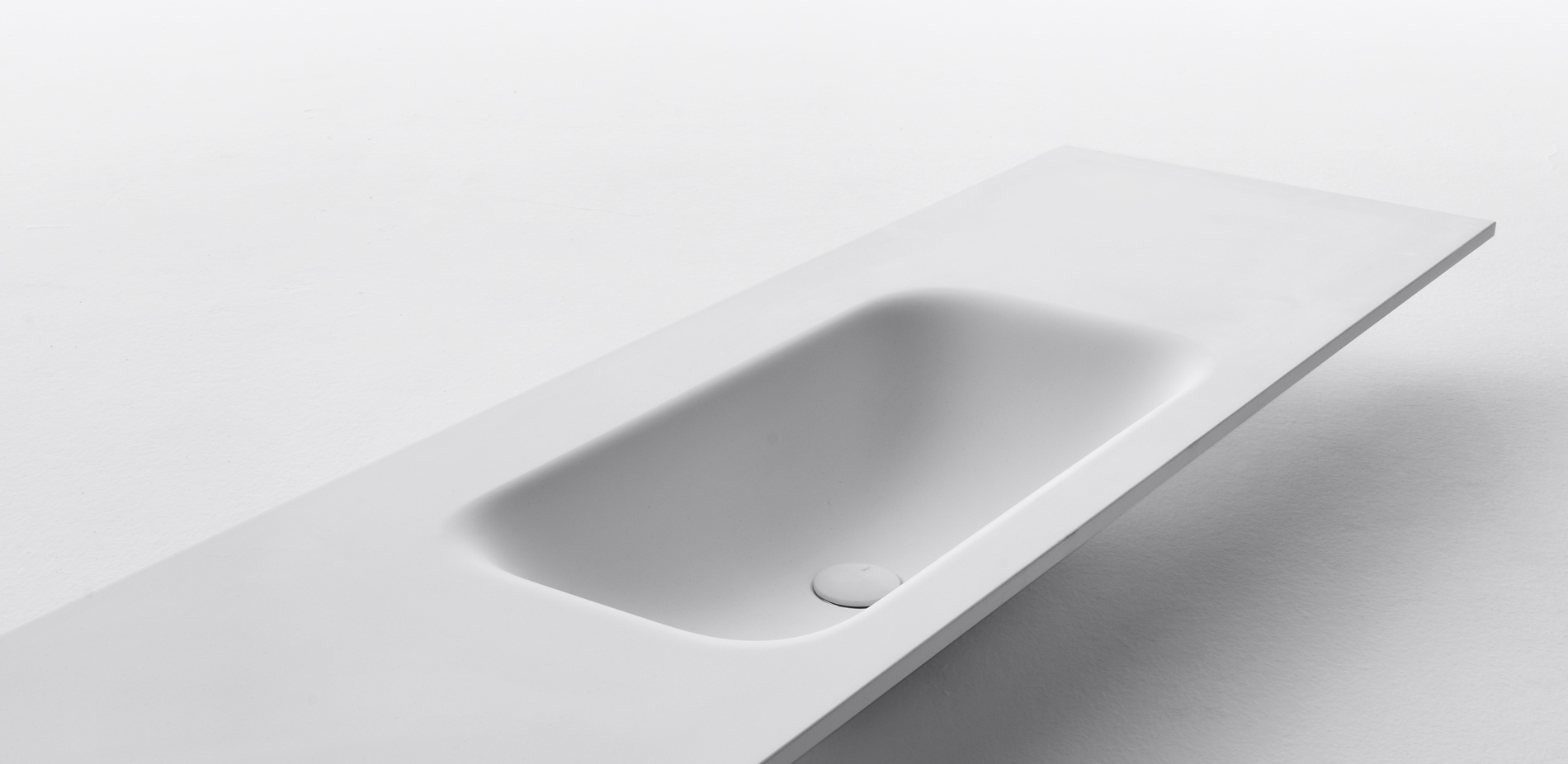带有 Cristalplant Biobased 独特和独特设计的洗脸盆集成台面系列,在尺寸和厚度以及洗脸盆在顶部的位置方面具有无限的定制可能性。 Cristalplant Biobased 是世界上性能最好和经过认证的材料用于建造洗脸盆和浴缸,并具有独特的柔软均匀的触感和光反射效果。