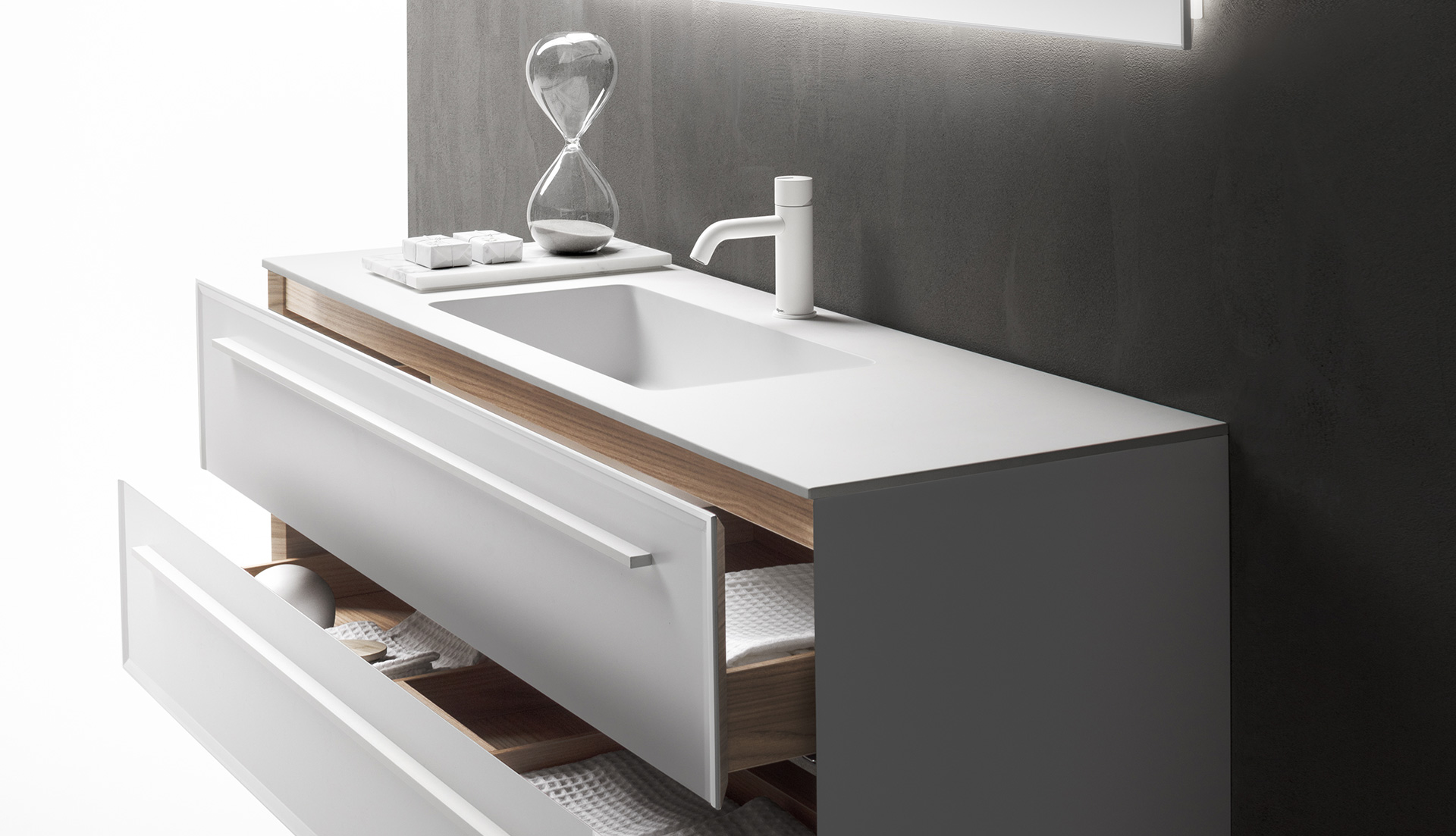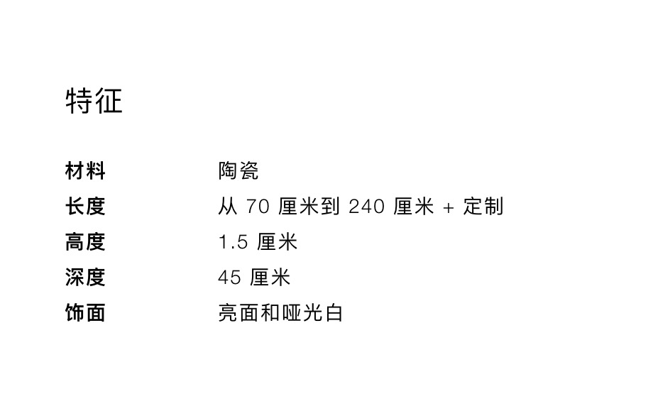 由亚光 Ceramilux 制成的集成台面系列。由于采用 Cristalplant 制成的表层,该材料保证了上衣的卓越品质和经认证的耐用性,物超所值。