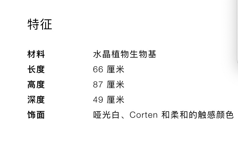 Cristalplant Biobased 独立式洗脸盆也有 Corten 和柔软触感的颜色可供选择。采用世界上性能最好且经过认证的材料制成,用于制造洗脸盆和浴缸,能够提供独特的柔软和均匀的触感和光反射效果。