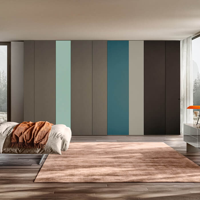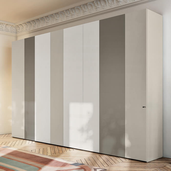 Smart 是多功能的原创卧室衣柜,可以悬挂或放置在地面上。它以定制漆面或三聚氰胺表带的无限可能性以及没有把手的创新推拉式开口系统而著称。