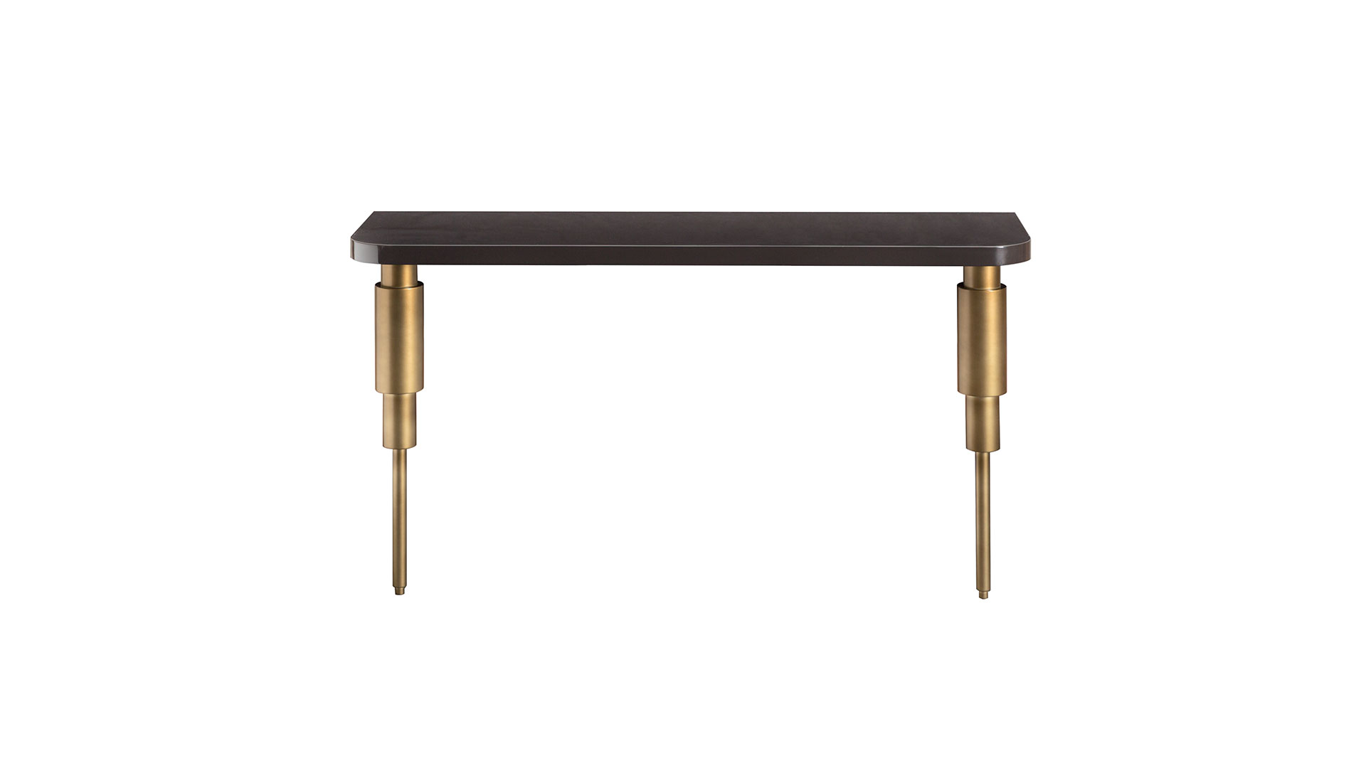 顶部为胶合板,带有拉丝光泽饰面的深色胡桃木盖。黄铜腿,抛光黄铜或钛金属饰面。