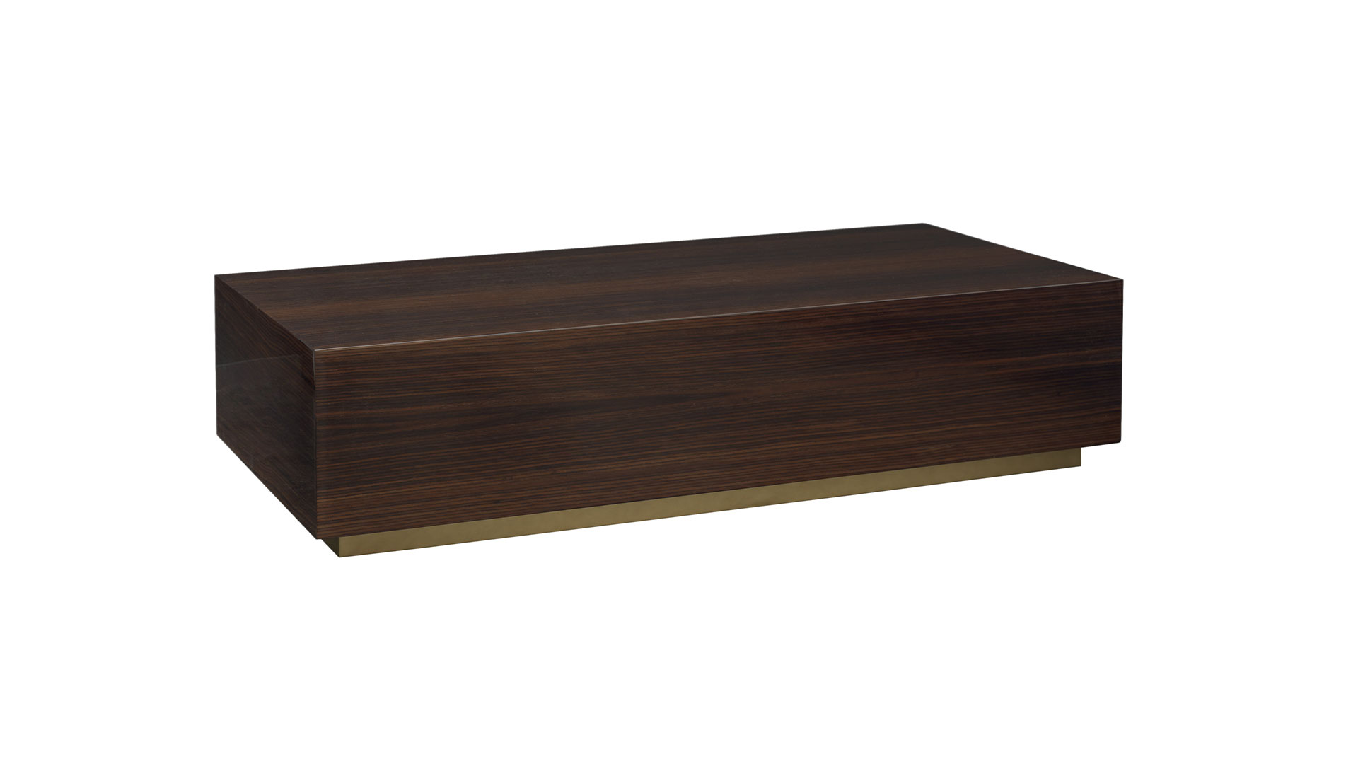 非常优雅的经典咖啡桌,坚固的结构和深色胡桃木的矩形桌面,我们特有的拉丝光泽饰面和抛光黄铜的宽底座。