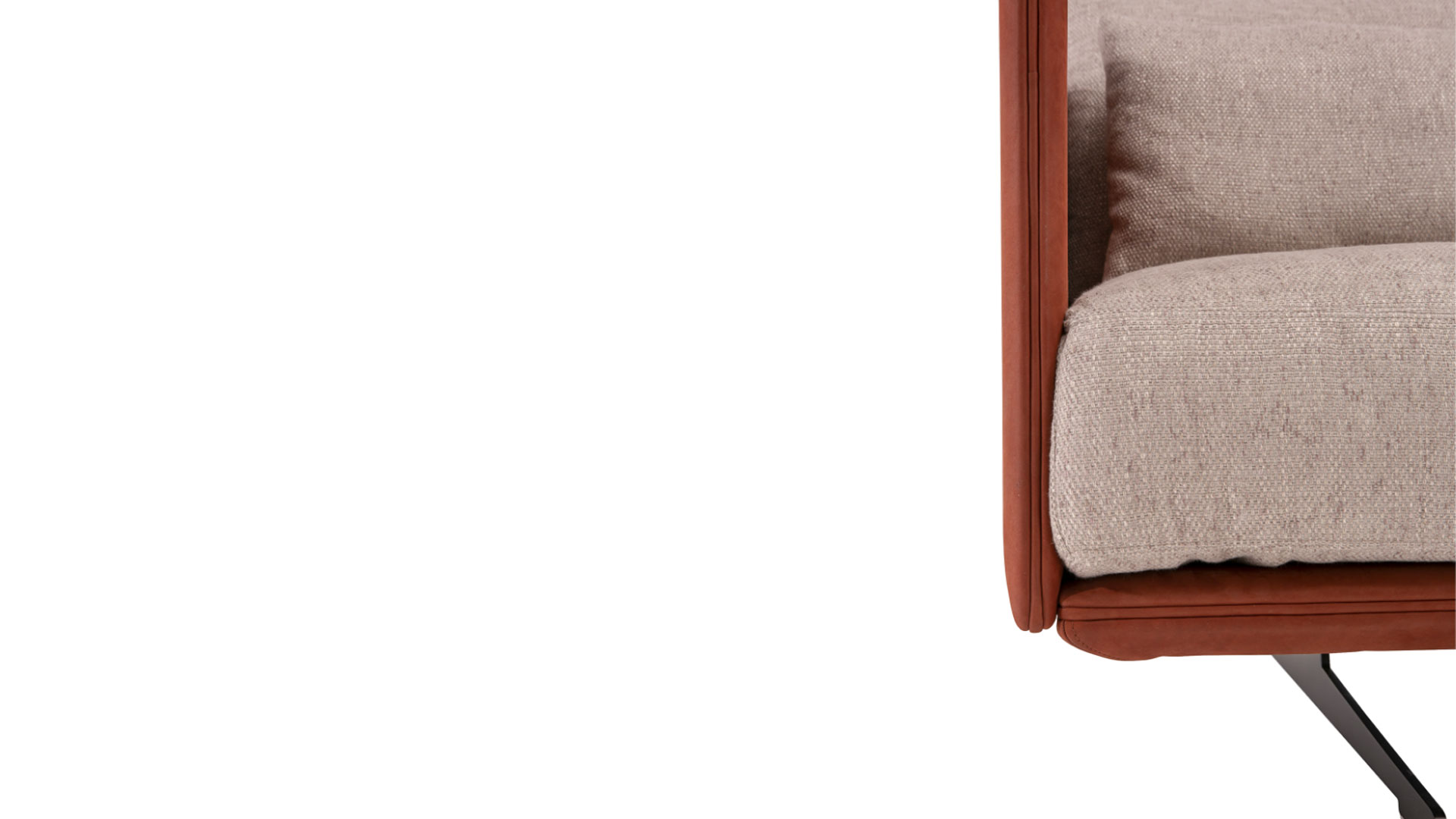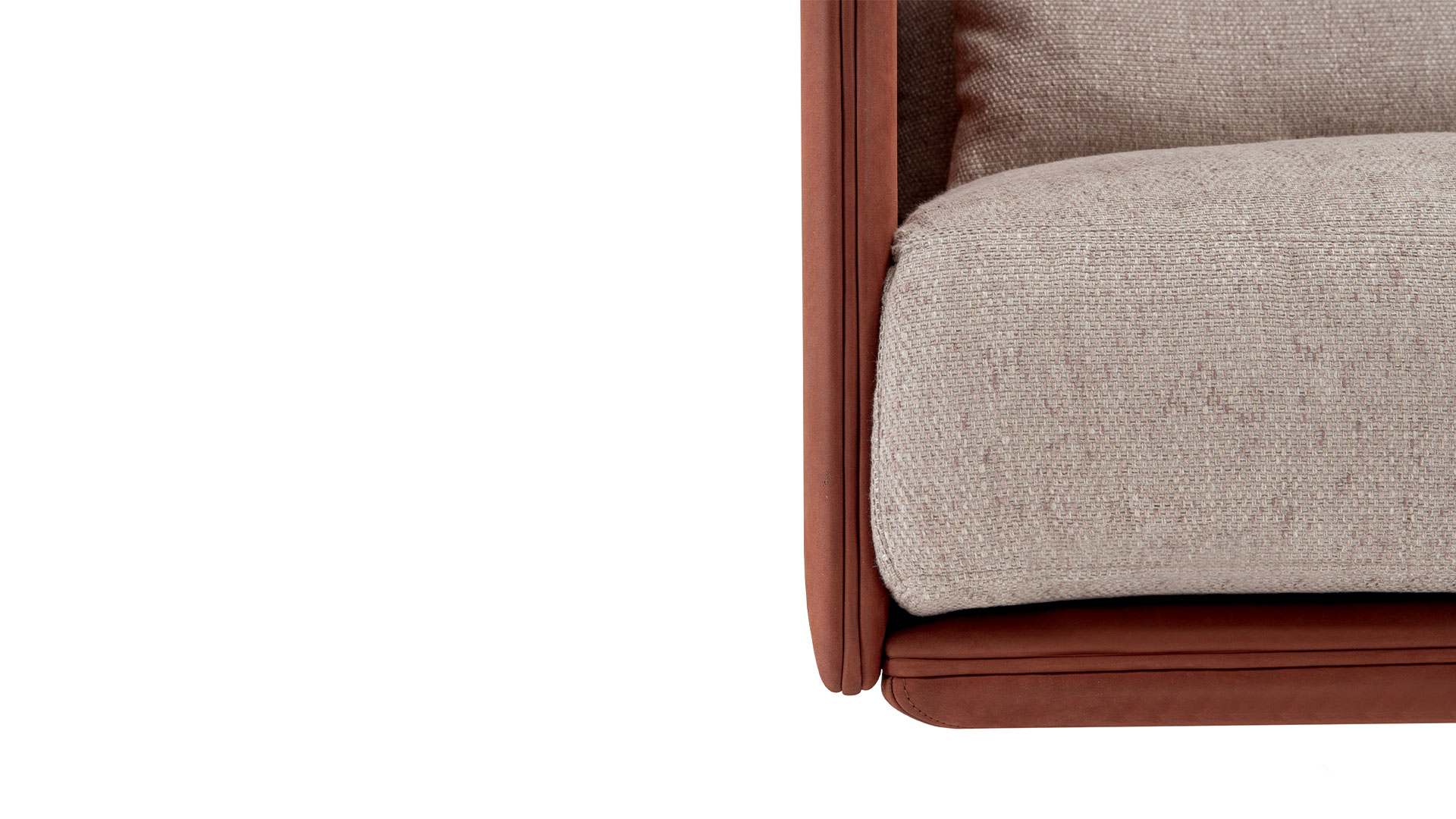 其现代设计能够重振代托纳风格的永恒材料,例如脚部的哑光黑色钢与古董皮革和托斯卡纳大地令人安心的色彩相结合的大棉结。结构的上部采用最高品质的鹅绒、记忆和橡胶制成,座椅由巧妙交织的弹性带支撑。
