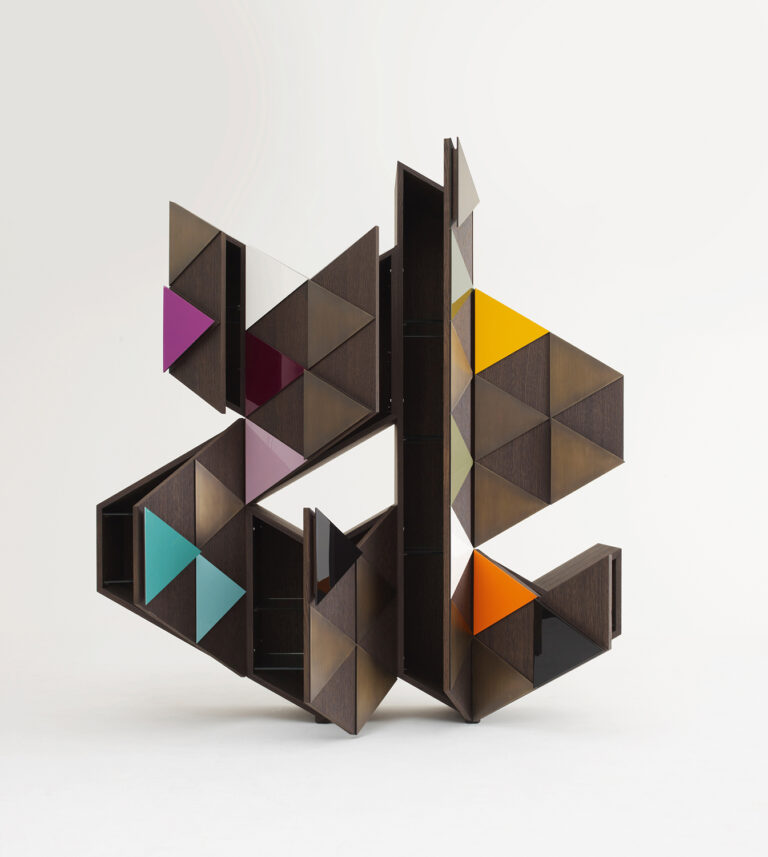 具有讽刺和特殊形状的容器,Arlequin是对意大利喜剧戴尔艺术的着名面具Harlequin的精致致敬。它的门装饰着不同饰面的三角形,并隐藏着不同尺寸和形状的容器,这些容器遵循正面的几何形状。
