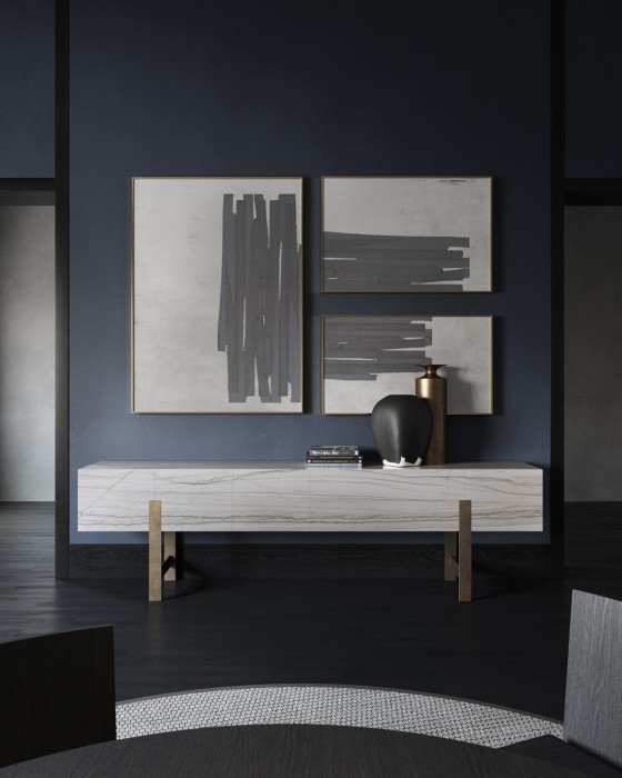 Gala以其极大的清醒和轻盈而著称,它的比例传递给我们。一个具有整体外观的重要容器悬挂在装饰家具的带状金属框架上。Gala配有门或抽屉,是一款多功能且精致的家具。