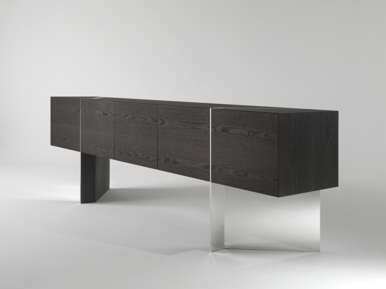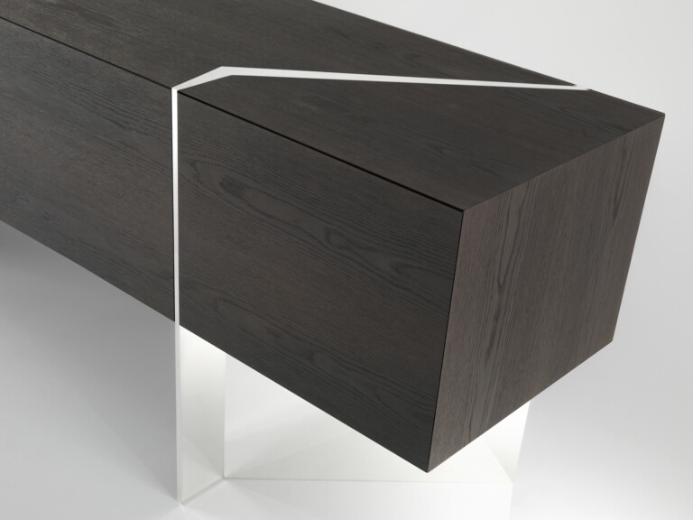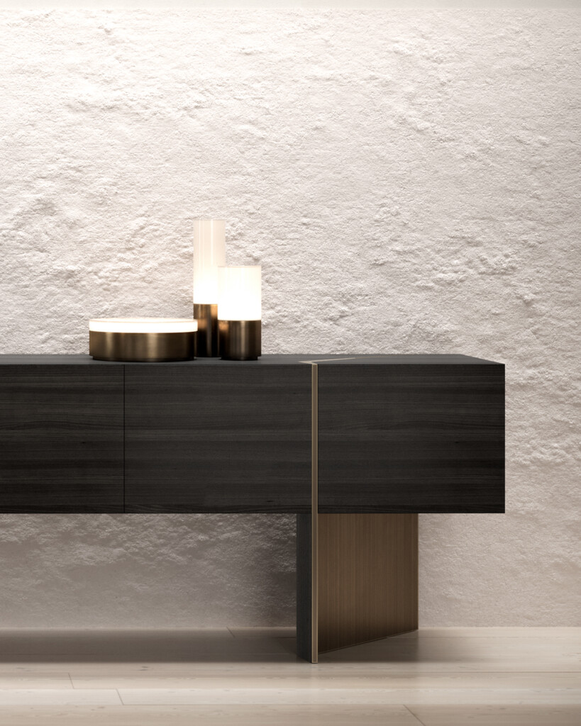 具有双重个性的喇嘛可以放在墙上或独立放置在房间的中间,以欣赏其所有细节。异形脚是物体的鲜明特征,从地面到顶部对角线适合家具主体,强调产品的形式价值。