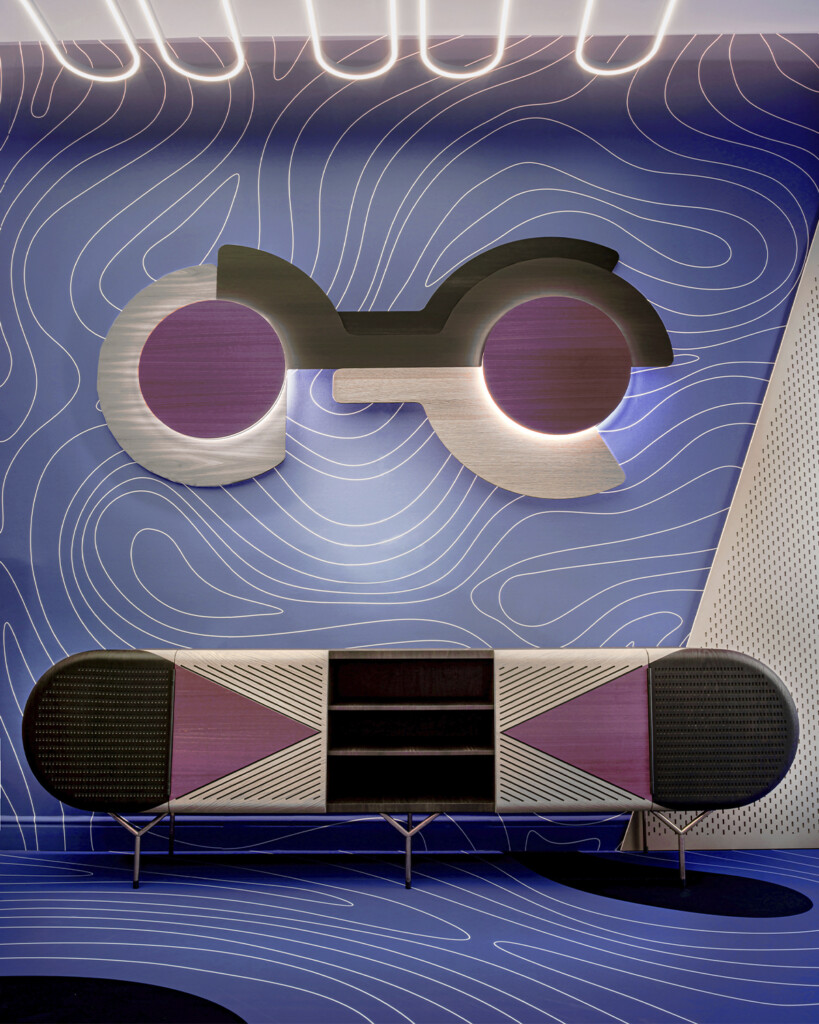 Mirar餐具柜从西班牙外观上看,从一眼就画出了它的形状和设计。 一种抽象绘画,试图描绘一张脸,使用天然木材的美丽本质的颜色作为调色板。每侧的斜面平行六面体,模拟面部的圆度,本质变化给出的色调差异标志着眼睛的圆度,中央隔间,保持打开,暗示鼻子。一种不同的看待世界的方式,一种不同的画木头的方式。