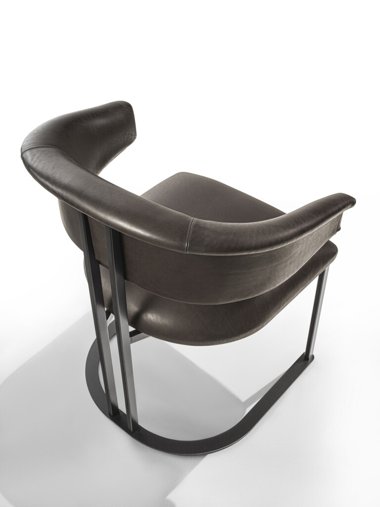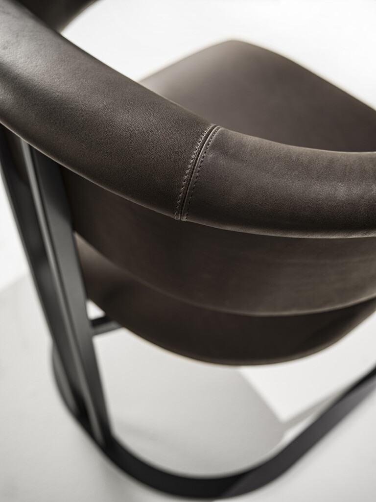 Kyo是一把扶手椅,以原始的方式诠释了设计的历史。弯曲和包裹形状与金属元素的结构相得益彰,并带有拉丝古董古铜色效果。独特的马蹄形底座支撑着一系列薄金属型材,连接到座椅和靠背的柔软和包裹衬垫上。结果是一把优雅,舒适,必备和永恒的椅子。